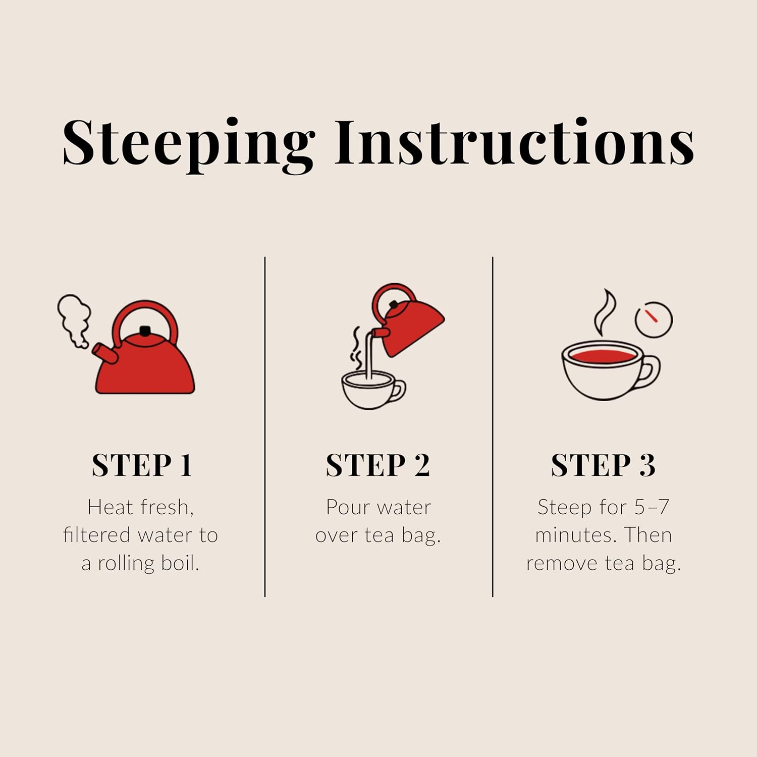 - Steeping Instructions: Steeping herbal tea is easy. Simply heat fresh, filtered water to a rolling boil. Then pour 6 oz of water over the tea bag and steep for 5-7 minutes. Serve hot or let cool and pour over ice.