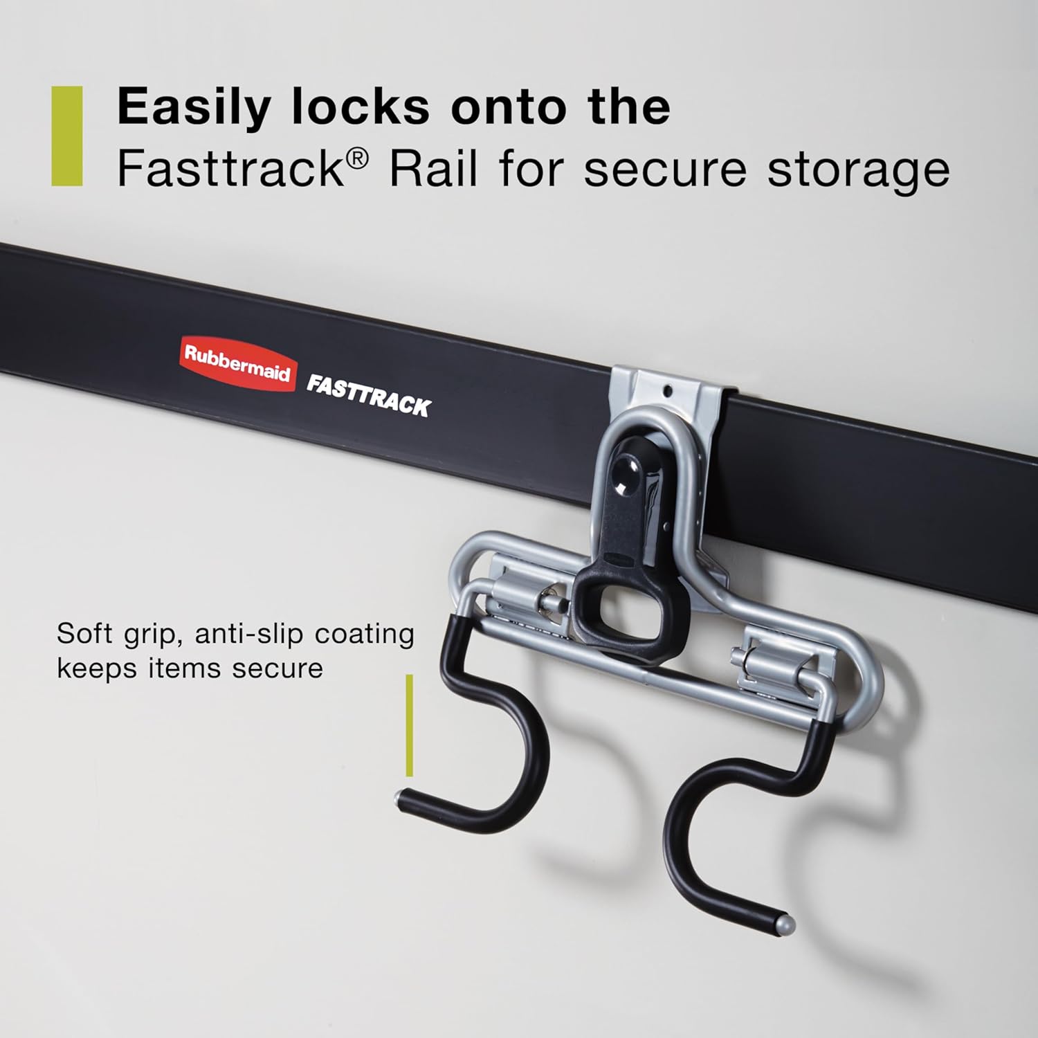 Rubbermaid FastTrack 2-Handle Hook (S Hook) Mounted Garage Storage and Space Saving Organization System Metallic Powder-Coated Steeel for Rakes/Brooms/Toys/Ladders