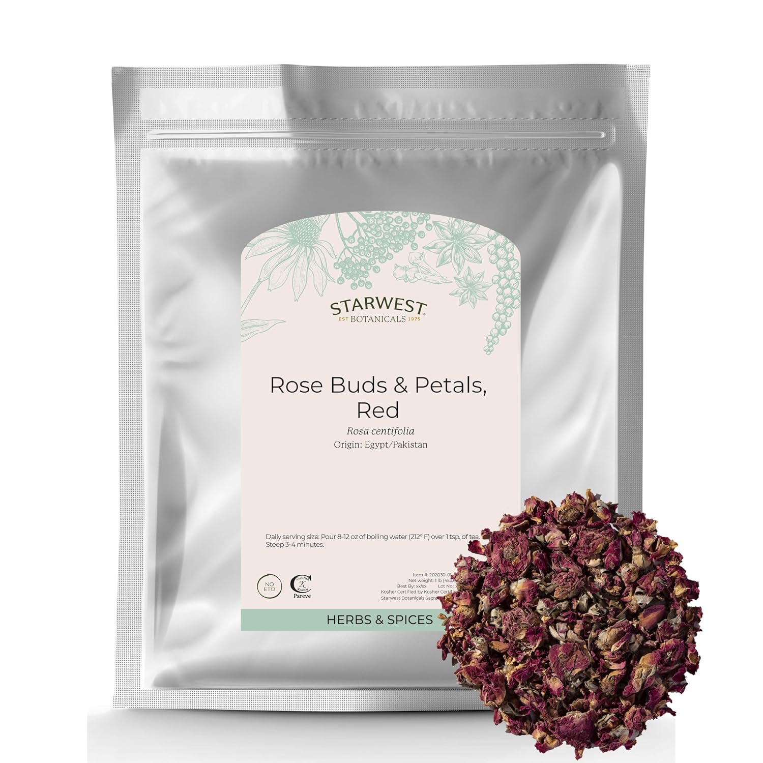 Starwest Botanicals Dried Red Rose Buds & Petals - Edible Flower for Tea, Baking, & Cooking, Use for Soap or Lotions, Certified Kosher - Bulk 1 lb Bag