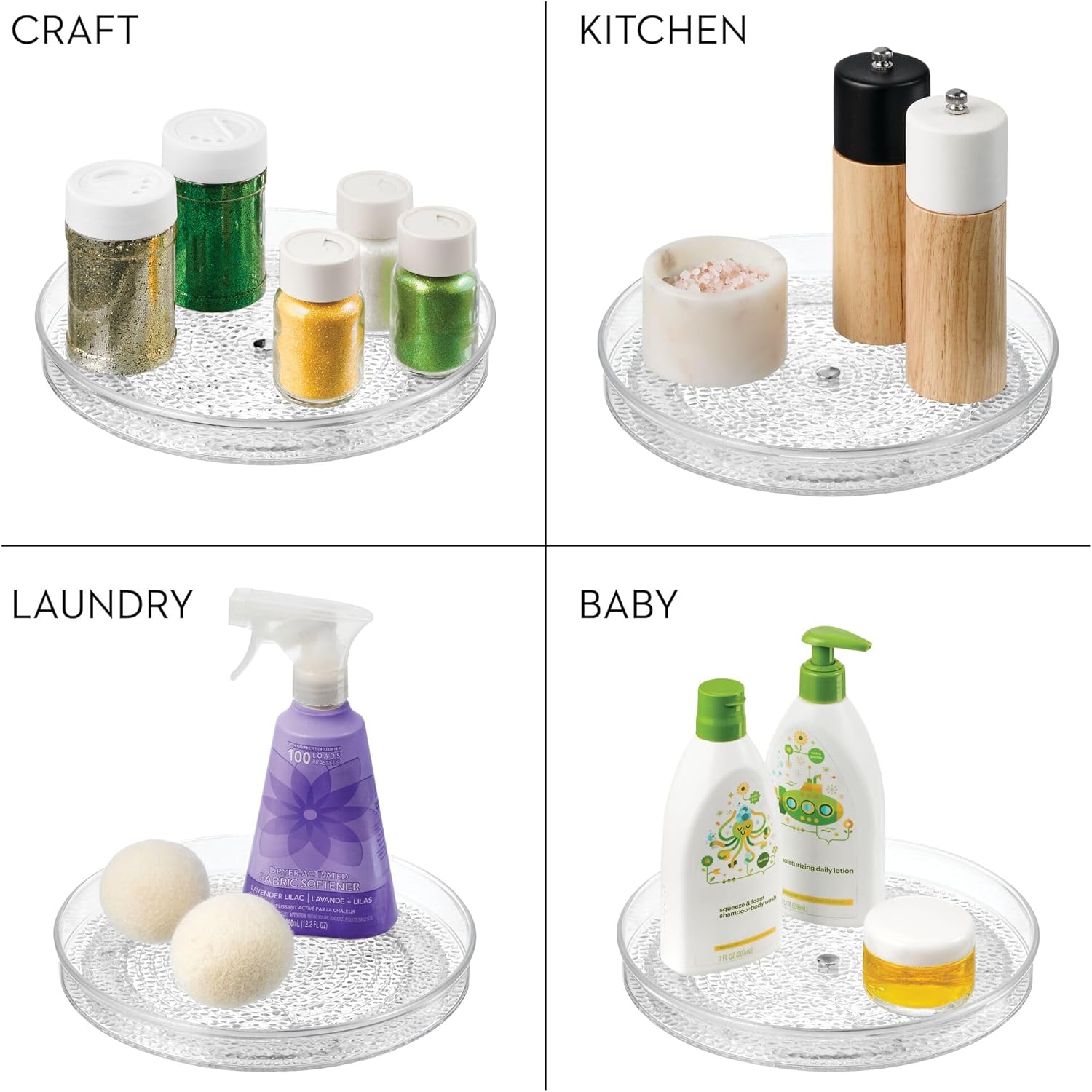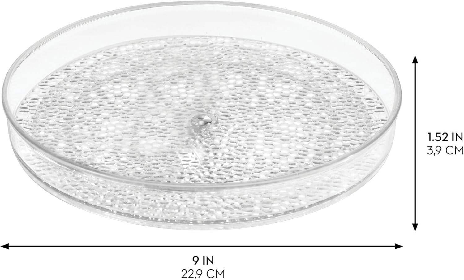 - EFFICIENT SIZE: The plastic lazy Susan turntable measures 9" x 9" x 1.5" to add instant organization to your vanity or countertop.