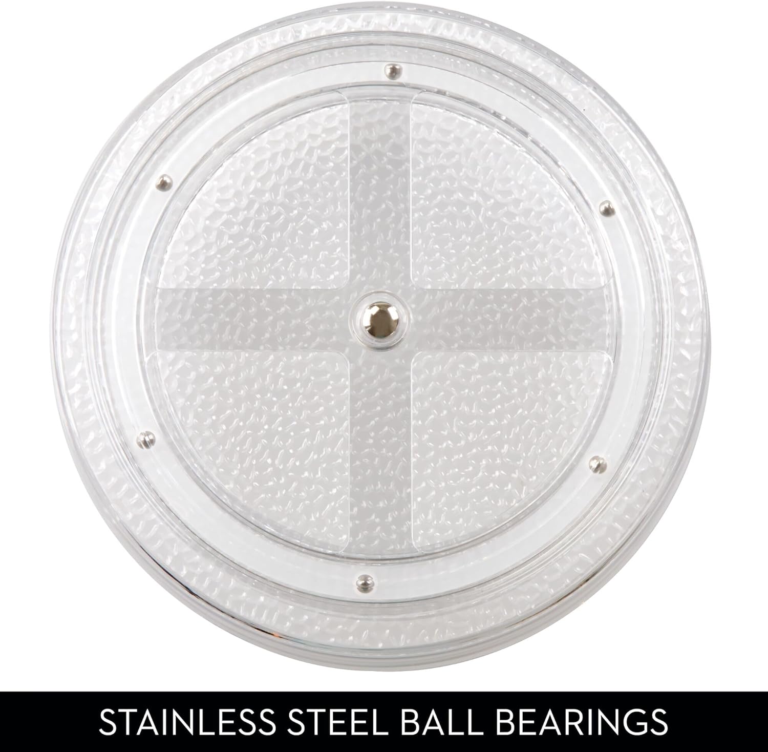- SMOOTH SPIN: This durable clear storage organizer features plastic construction that stands up to everyday use, with a stainless-steel ball-bearing bottom for easy spinning.