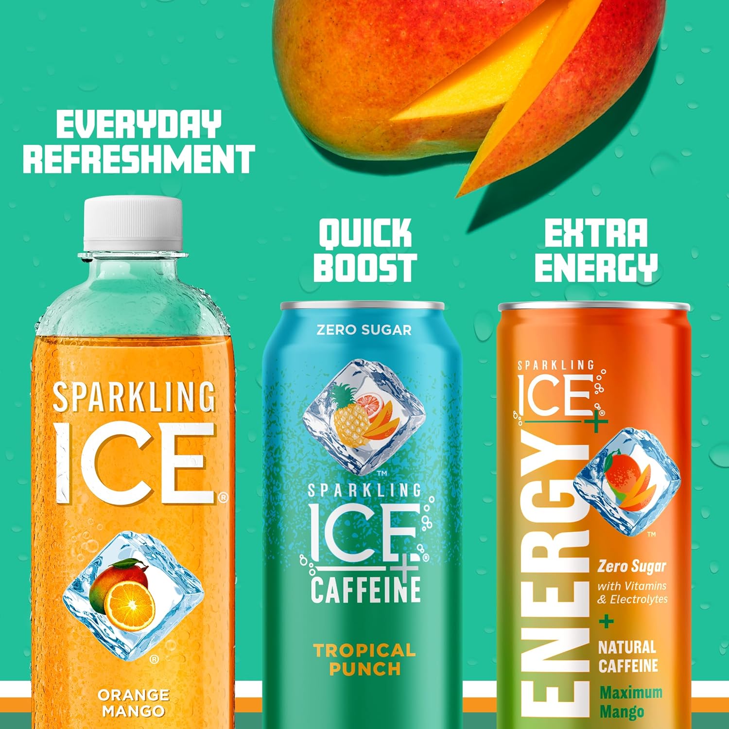 - ZERO SUGAR Pretty sweet, right? Sparkling Ice Orange Mango brings on all the taste you’ve been missing, while making the sugar go missing, too
