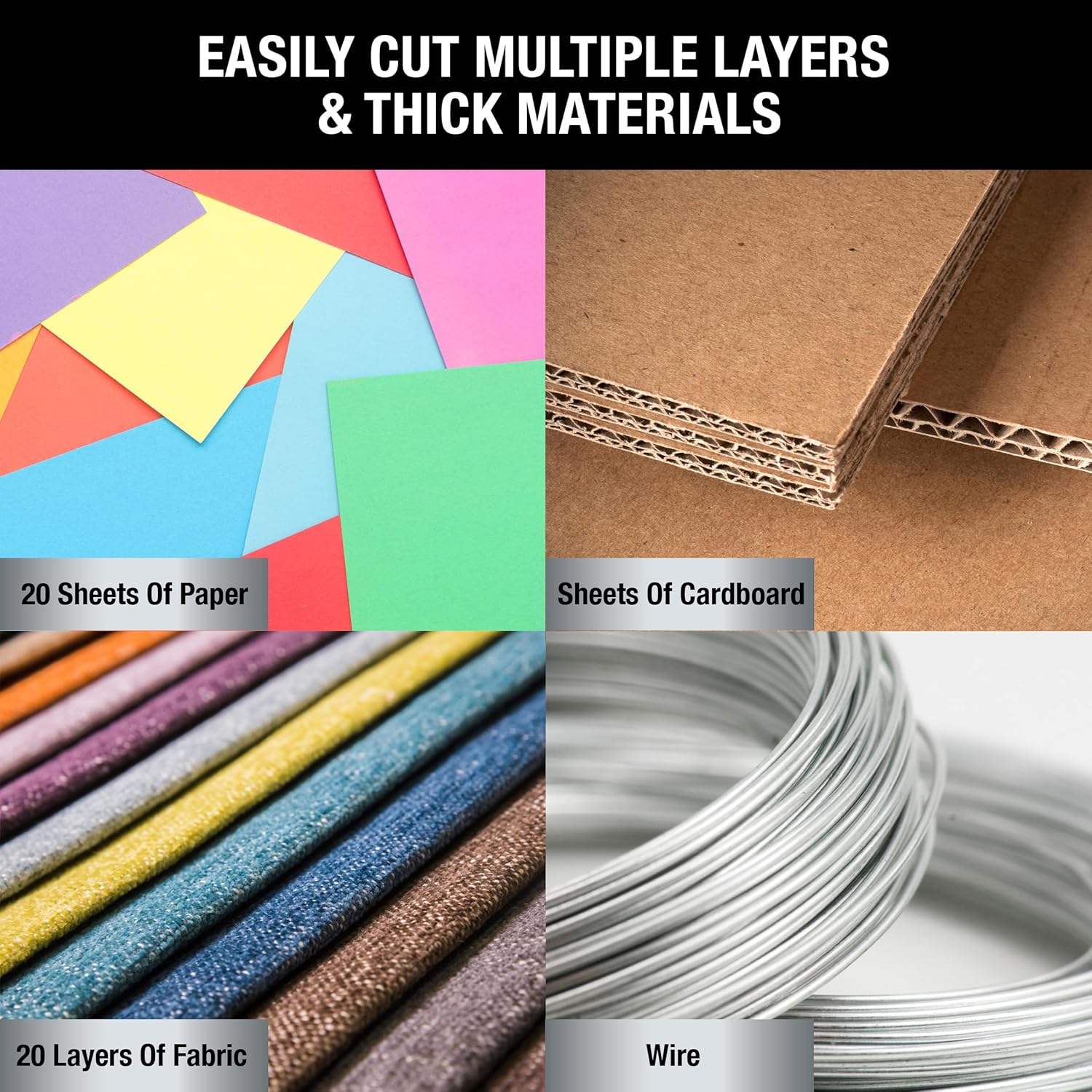 - Unmatched Cutting Power & Versatility: Our multifunction scissors are designed for strength and precision and can cut through 20 layers of poly/cotton fabric, 20 sheets of paper, or 10 sheets of cardboard with ease. Whether working on crafts, packaging, or industrial materials, they provide superior performance