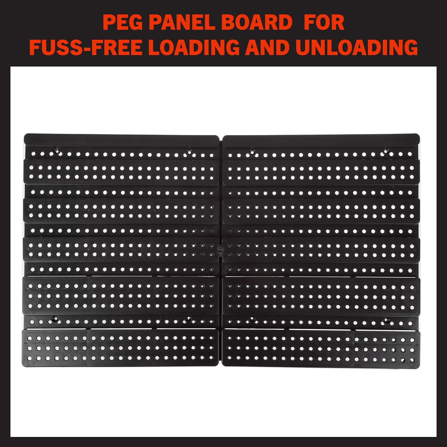 - SIMPLE MOUNTING - Hang the black peg panel board base virtually anywhere in your garage, craft room, or workshop thanks the flat, streamlined design. The special design lets bins sit on the board in various configurations for custom garage storage.