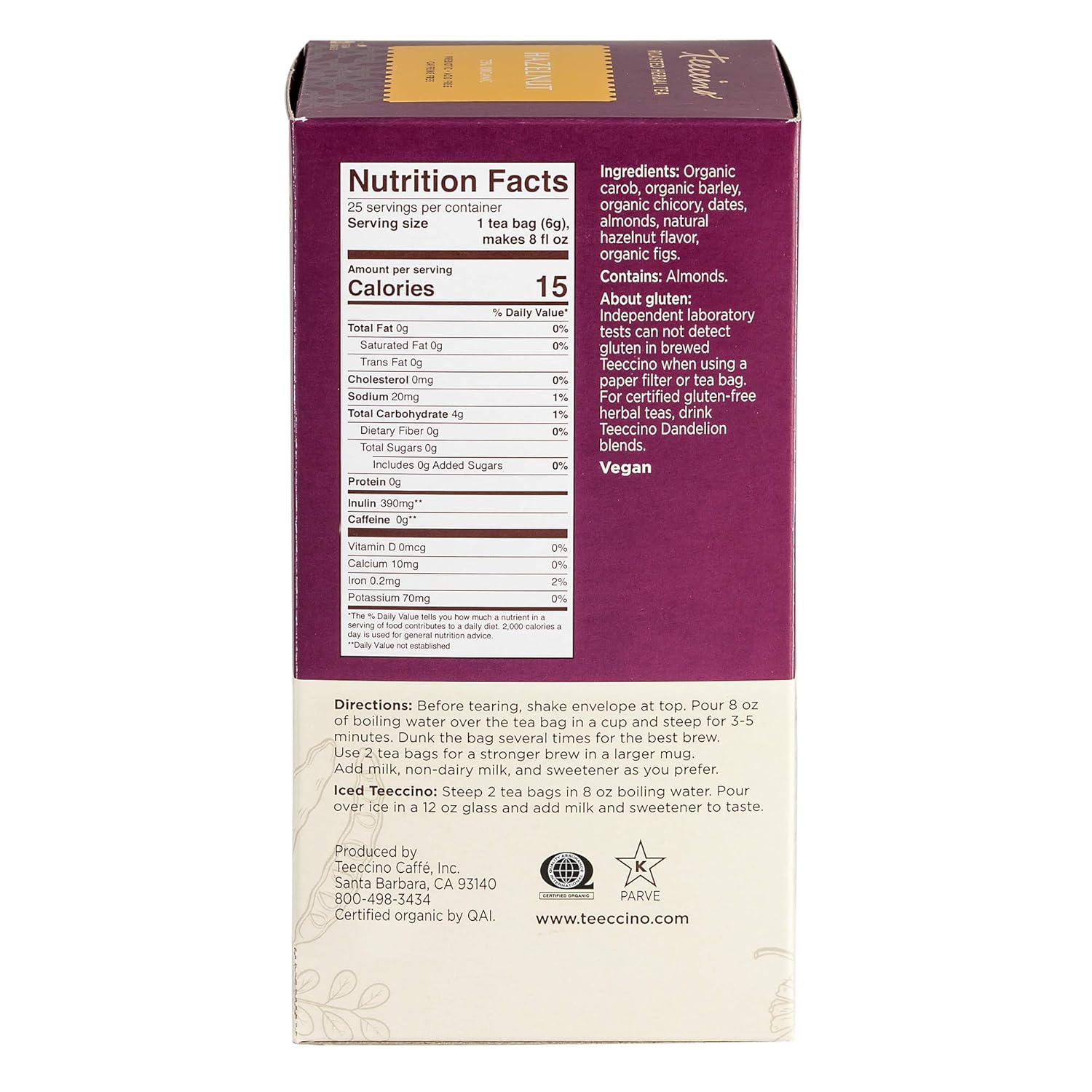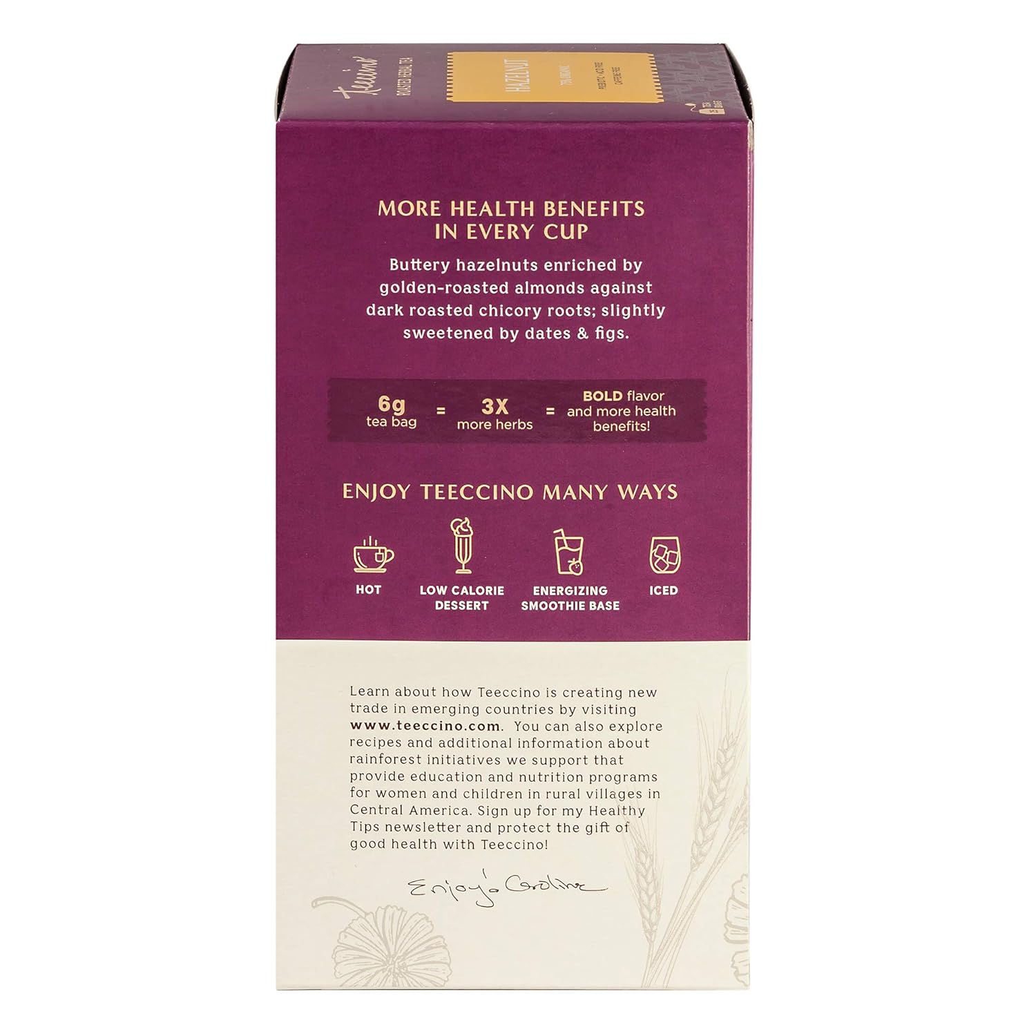 Teeccino Hazelnut Herbal Tea - 25 Tea Bags - Rich & Roasted Herbal Tea That’s Caffeine Free & Prebiotic for Natural Energy,
