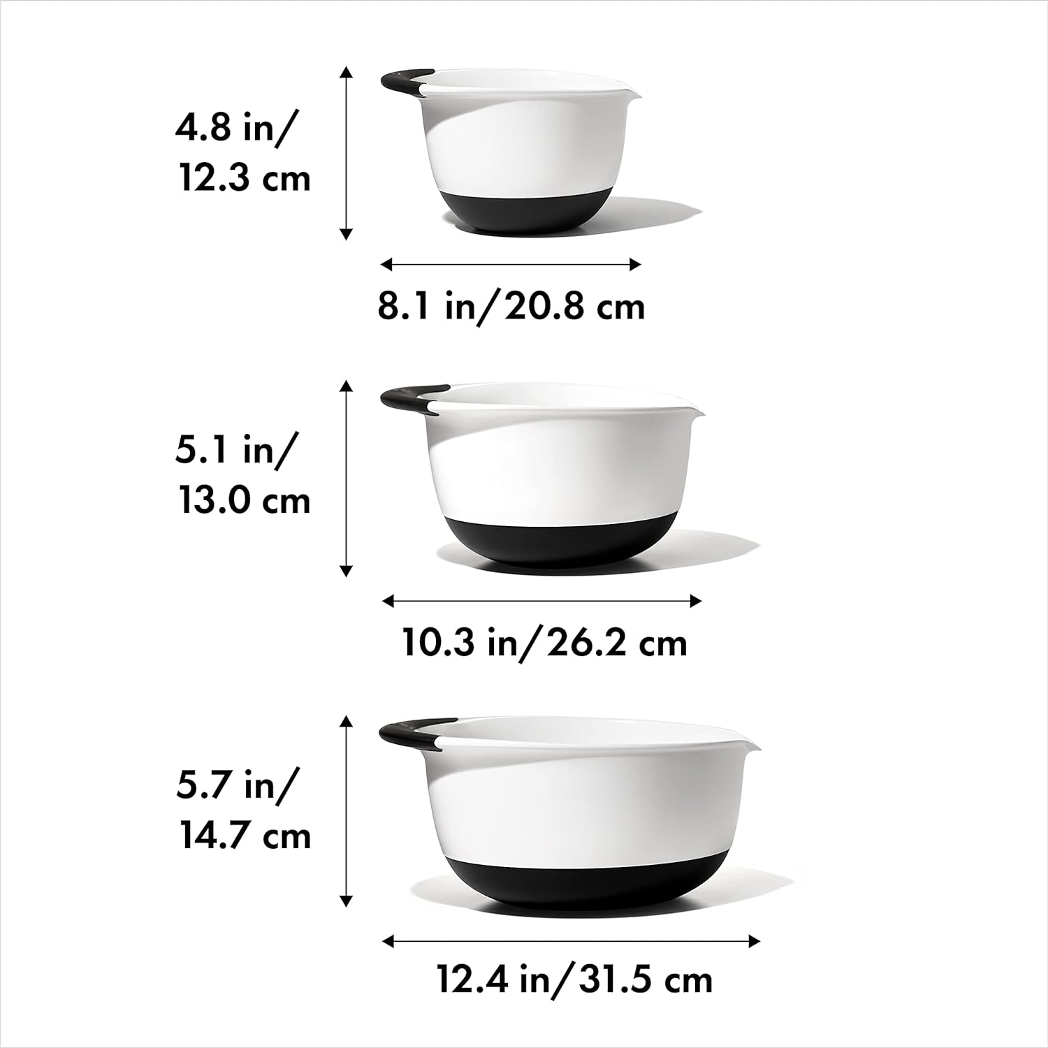 OXO Good Grips 3- Piece Plastic Mixing Bowl Set, 2500 ml,White/Black