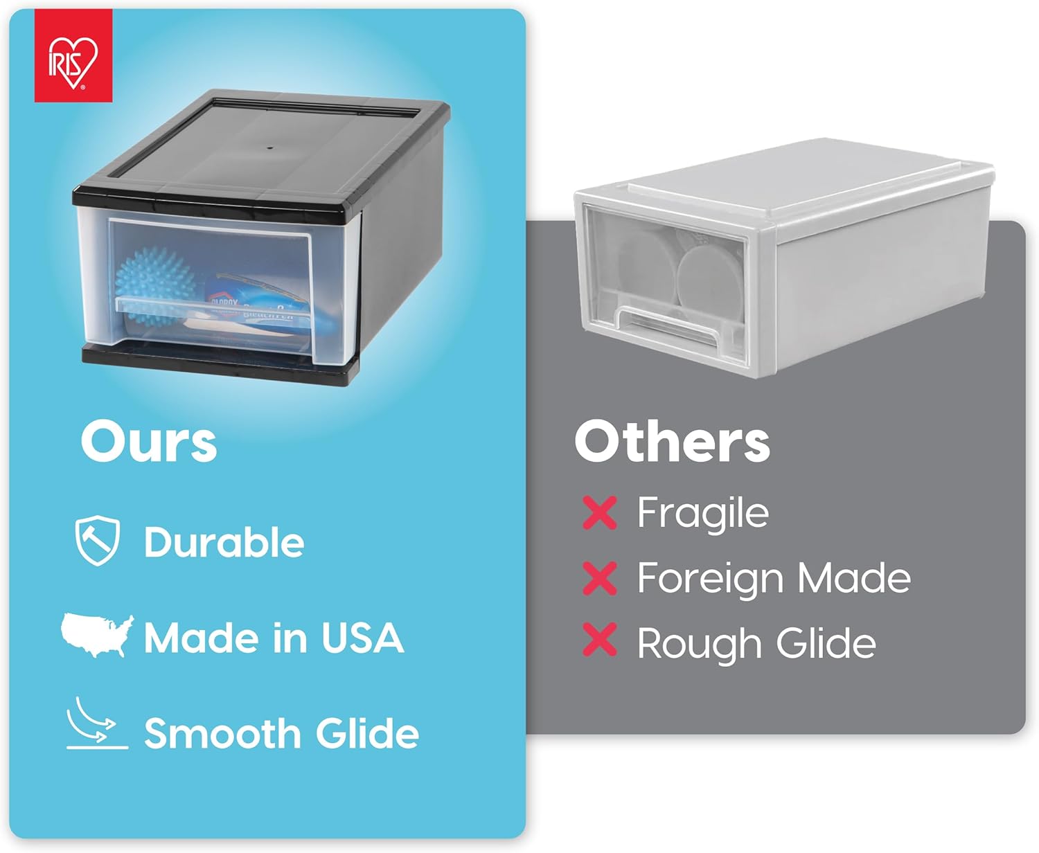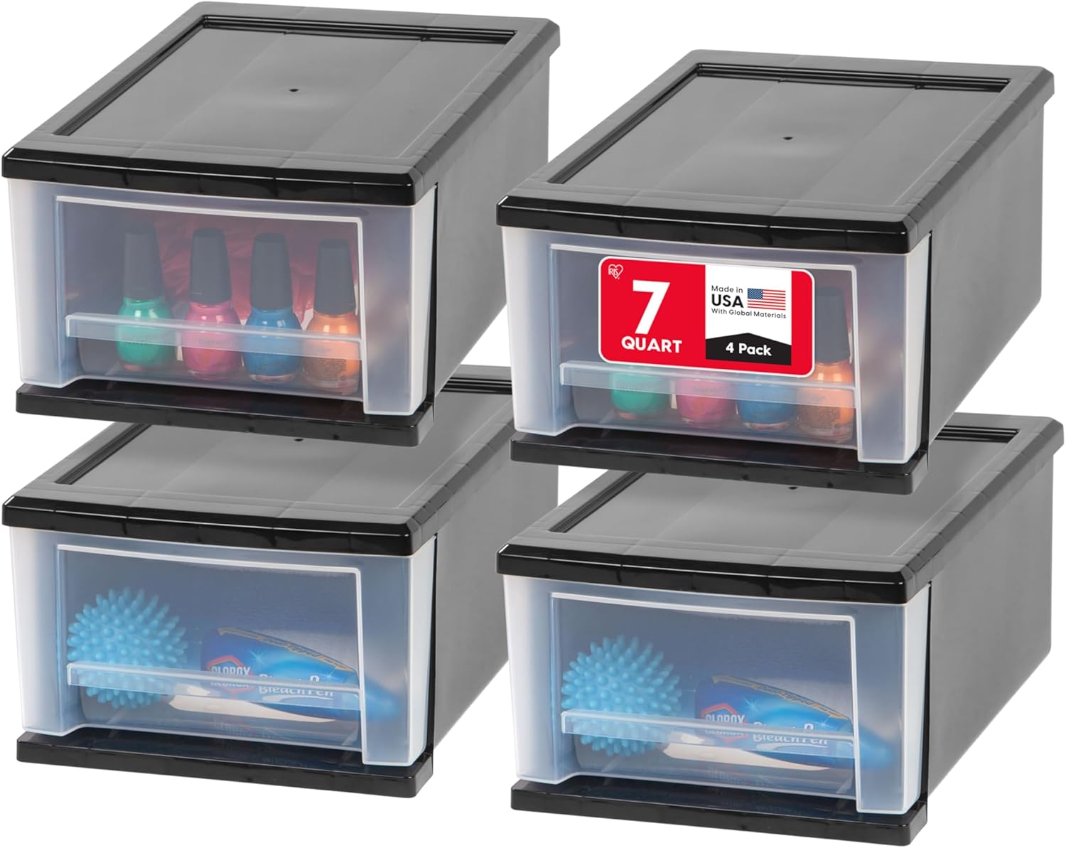 - MADE IN USA with global materials - The IRIS USA plastic stacking drawers offer a practical storage solution for any room in your home. Keep small, similar things together or use them for storing frequently used and replenished items such as snacks, vitamins and medicine, stationery, craft supplies, and more.