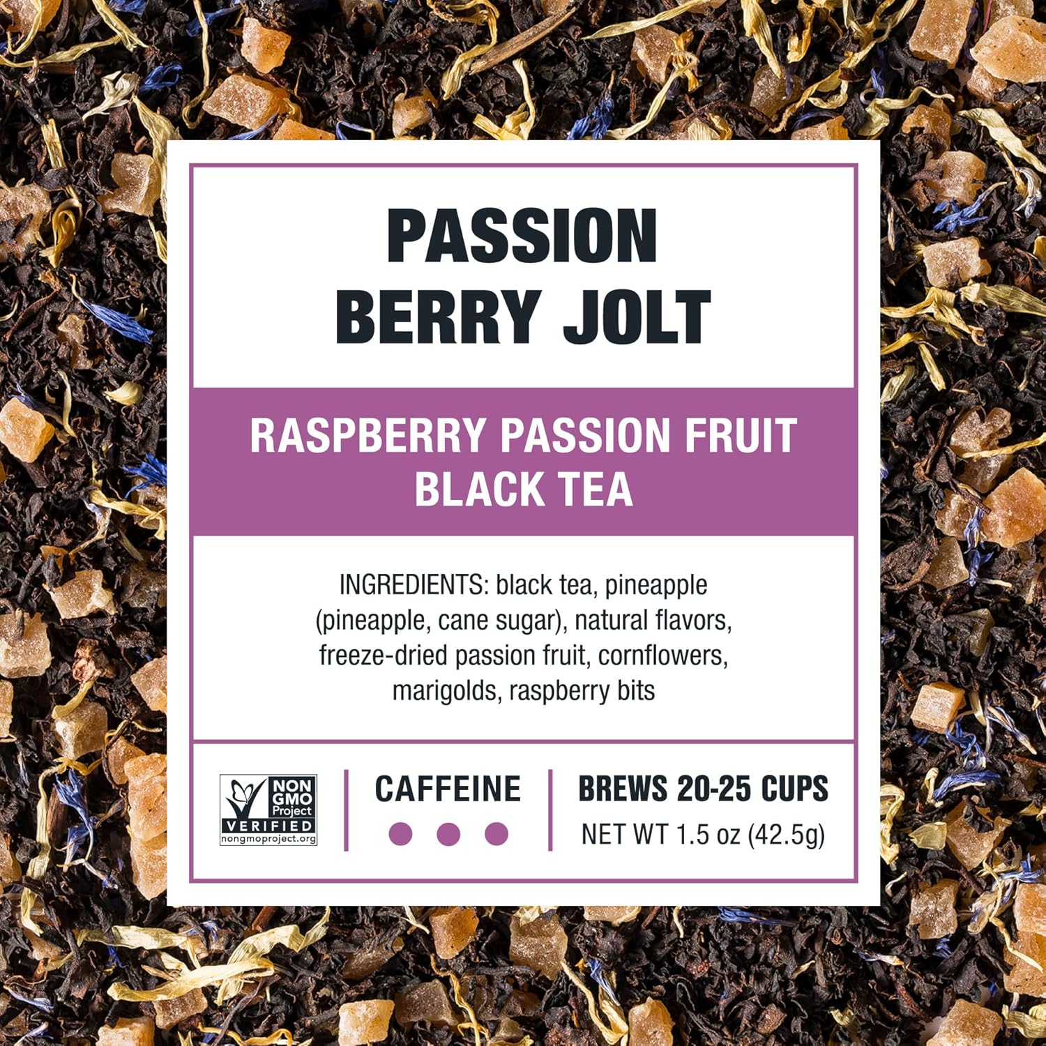 Tiesta Tea Passion Berry Jolt, Premium Loose Leaf, Classic Black Tea Blends, Raspberry Passion Fruit Black Tea, High-Caffeine, Hot or Iced Brews Up to 25 Cups, 1.5 Ounce Resealable Pouch