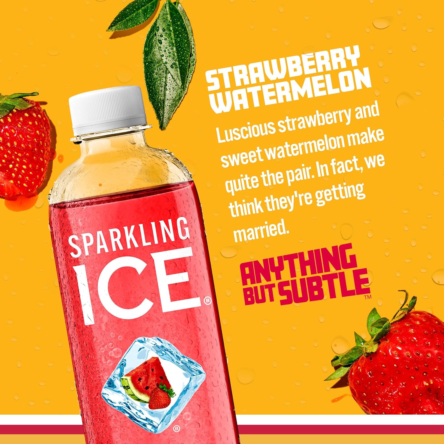 Sparkling Ice, Strawberry Watermelon Sparkling Water, Zero Sugar Flavored Water, with Vitamins and Antioxidants, Low Calorie Beverage, 17 fl oz Bottles (Pack of 12)