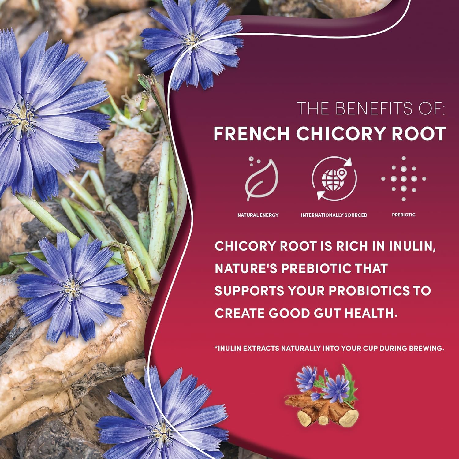 - PREBIOTICS FOR GUT HEALTH - Inulin from chicory root is a prebiotic soluble fiber that nourishes probiotics. Each cup supports good digestion with nearly 400mg of inulin.