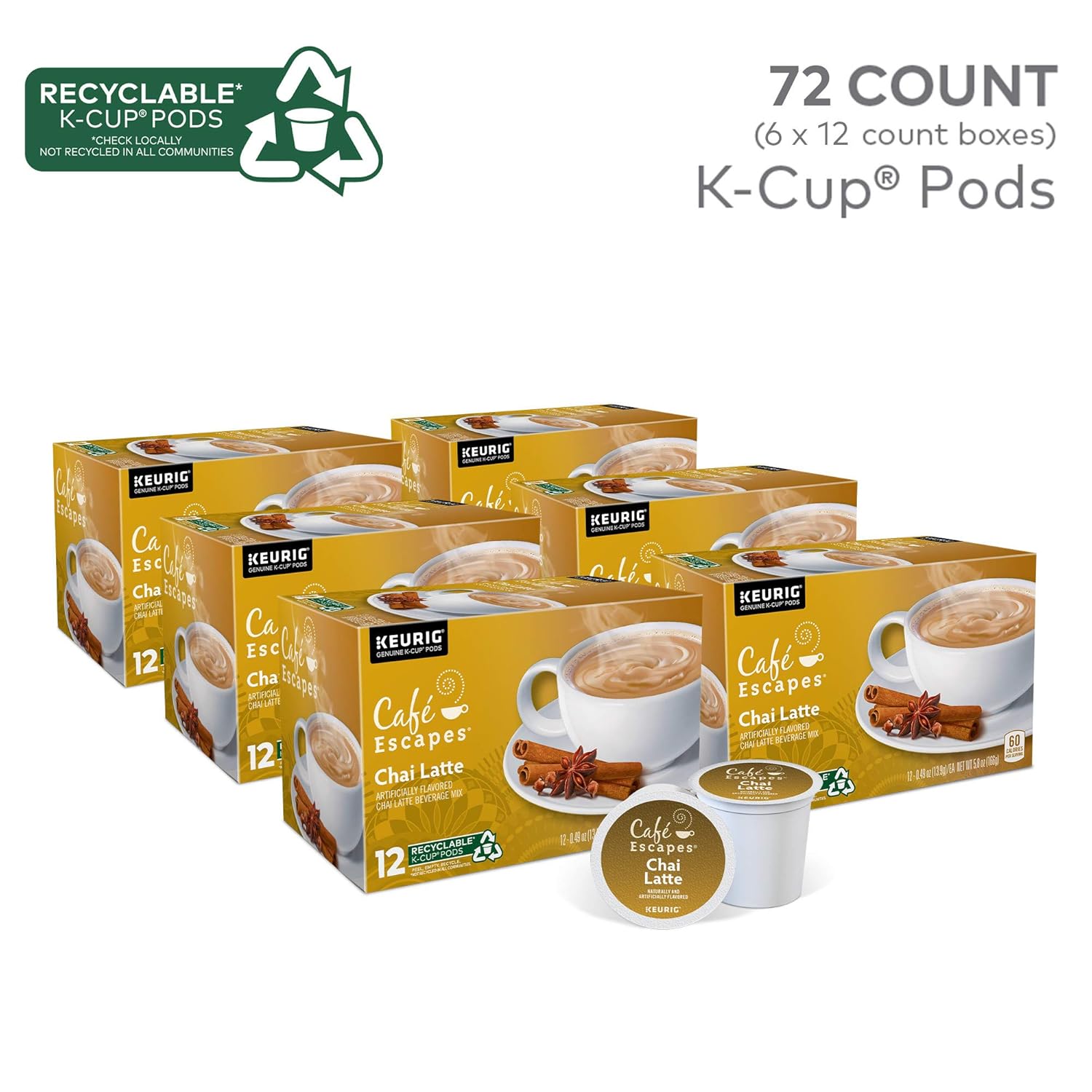 Cafe Escapes Chai Latte Keurig Single-Serve K-Cup Pods, 72 Count