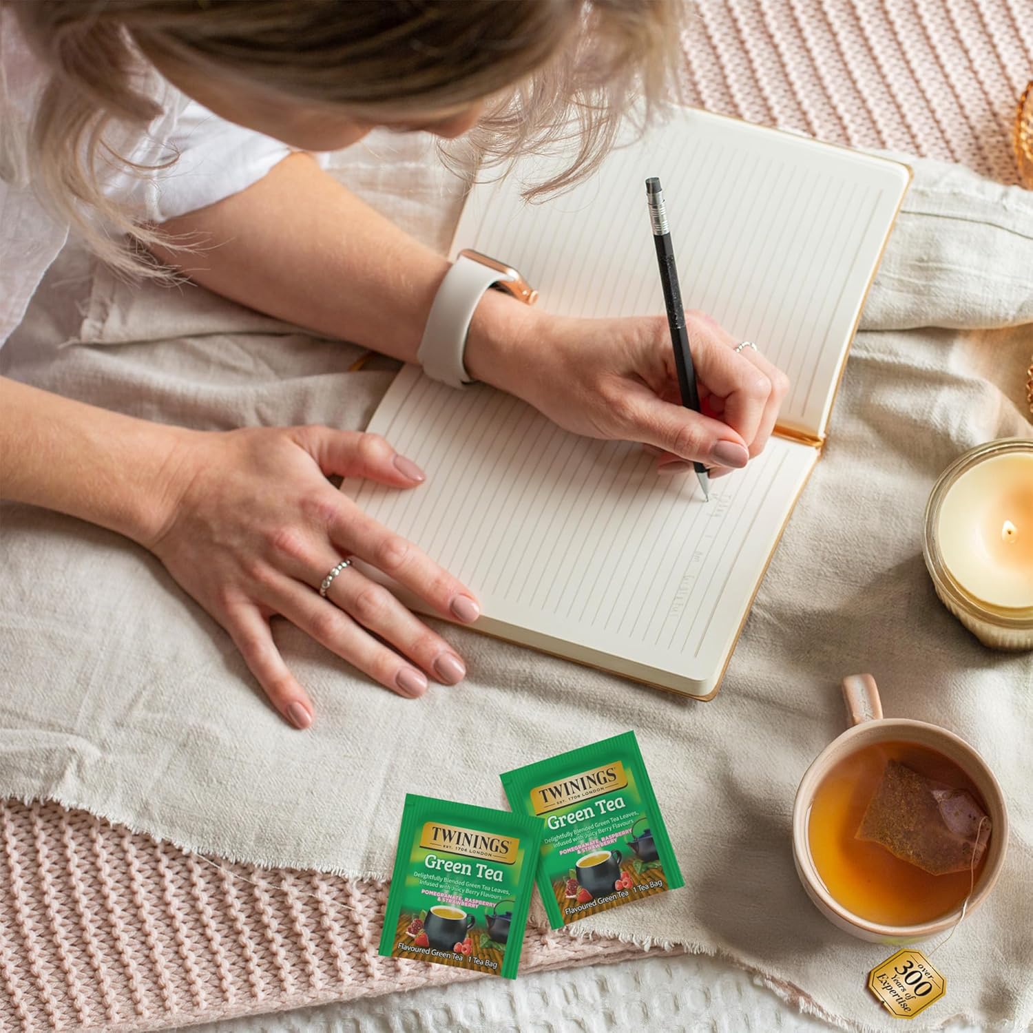 Twinings Green Tea with Pomegranate, Raspberry, & Strawberry Individually Wrapped Bags, 20 Count (Pack of 6), Caffeinated, Enjoy Hot or Iced, 120 Teabags