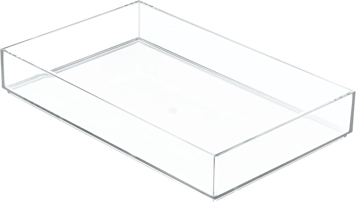 - FUNCTIONAL - Maximize drawer space with the iDesign Clarity Clear Drawer Organizer; These clear plastic trays are ideal for organizing makeup, skincare, office supplies, or small bathroom essentials on your vanity, dresser, or desk