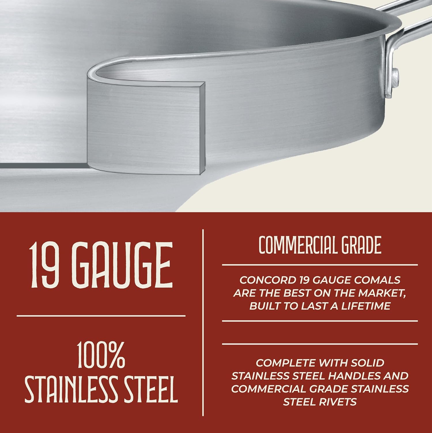 - Comal is made from commercial quality full Stainless Steel.