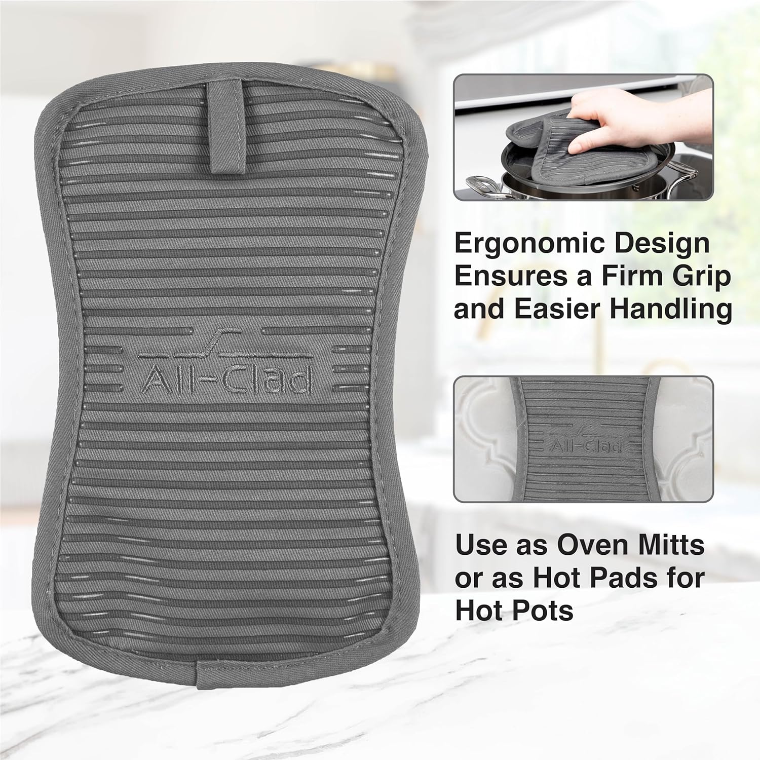 All-Clad Premium Pot Holder & Heating Pad, (2-Pack) Heat Resistant to 500 Degrees, 100% Cotton 10"x6.25" for Kitchen and Barbeque, Pewter