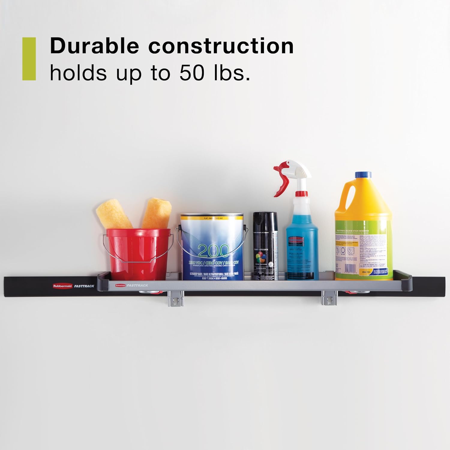 Rubbermaid FastTrack Rail Large Shelf Organization System, Holds up to 50 Pounds, Ideal for Cleaning Products/Garden Supplies/Laundry Products
