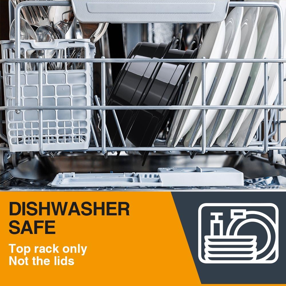 - MICROWAVE, DISHWASHER AND FREEZER SAFE: These food storage containers are BPA-free and can be safely used in the microwave many times without damage. You can also put the bowl in the dishwasher for easy and convenient cleaning. These food containers can be reheated or frozen and can withstand temperatures ranging from (-22°F to 284°F) or (-30°C to 140°C). Reusable round containers are stackable and easy to store when not in use.