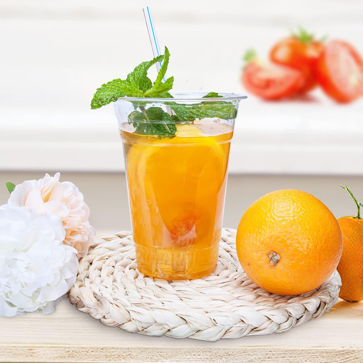 - 16 oz plastic cups great for any COLD beverage such as juice, iced Coffee, Iced tea, bubble tea, lemonade, smoothies, parfait, soda, beer, frozen drinks, mixed drinks, cocktails, Frappuccino, lattes and so many more