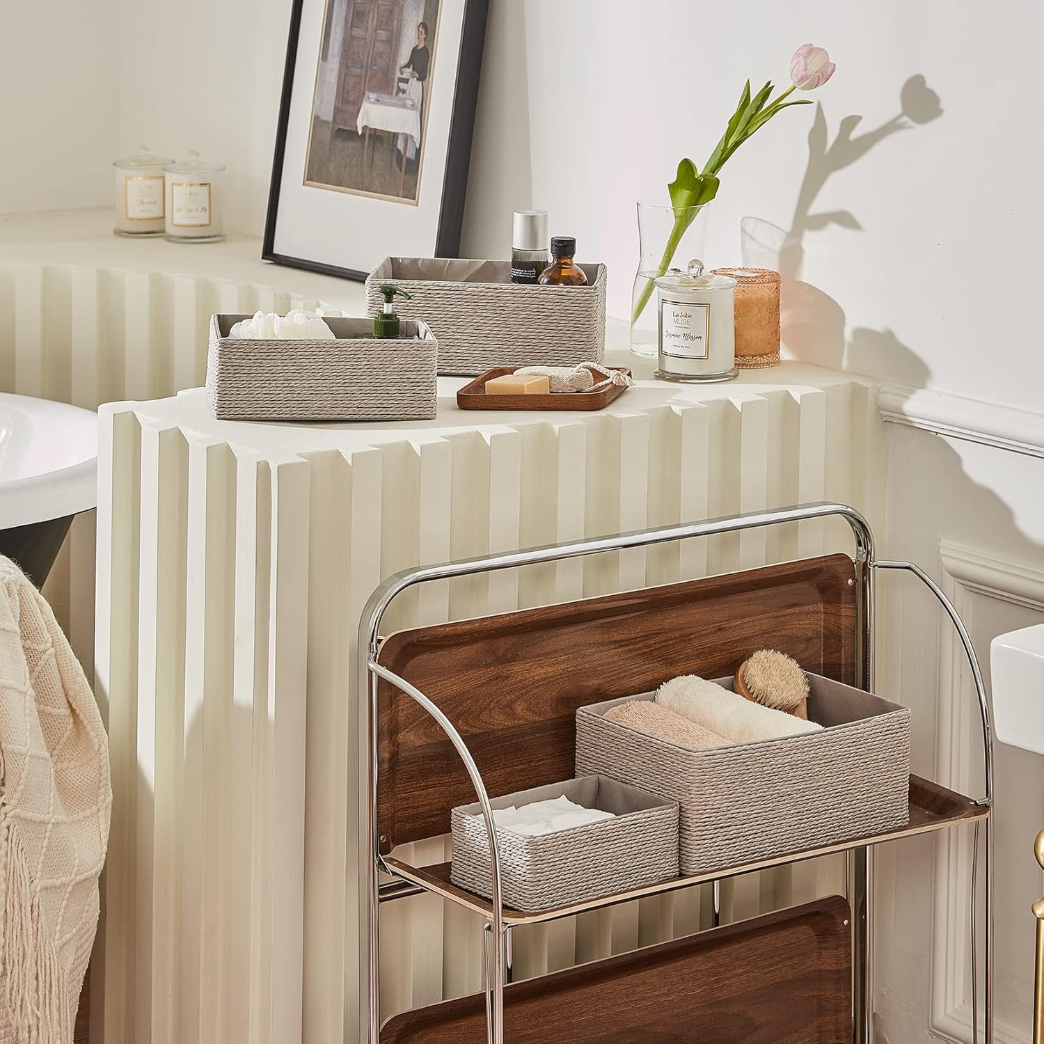 LA JOLIE MUSE Storage Baskets Set 4 - Stackable Woven Basket Paper Rope Bin, Storage Boxes for Makeup Closet Bathroom Bedroom (Gray)