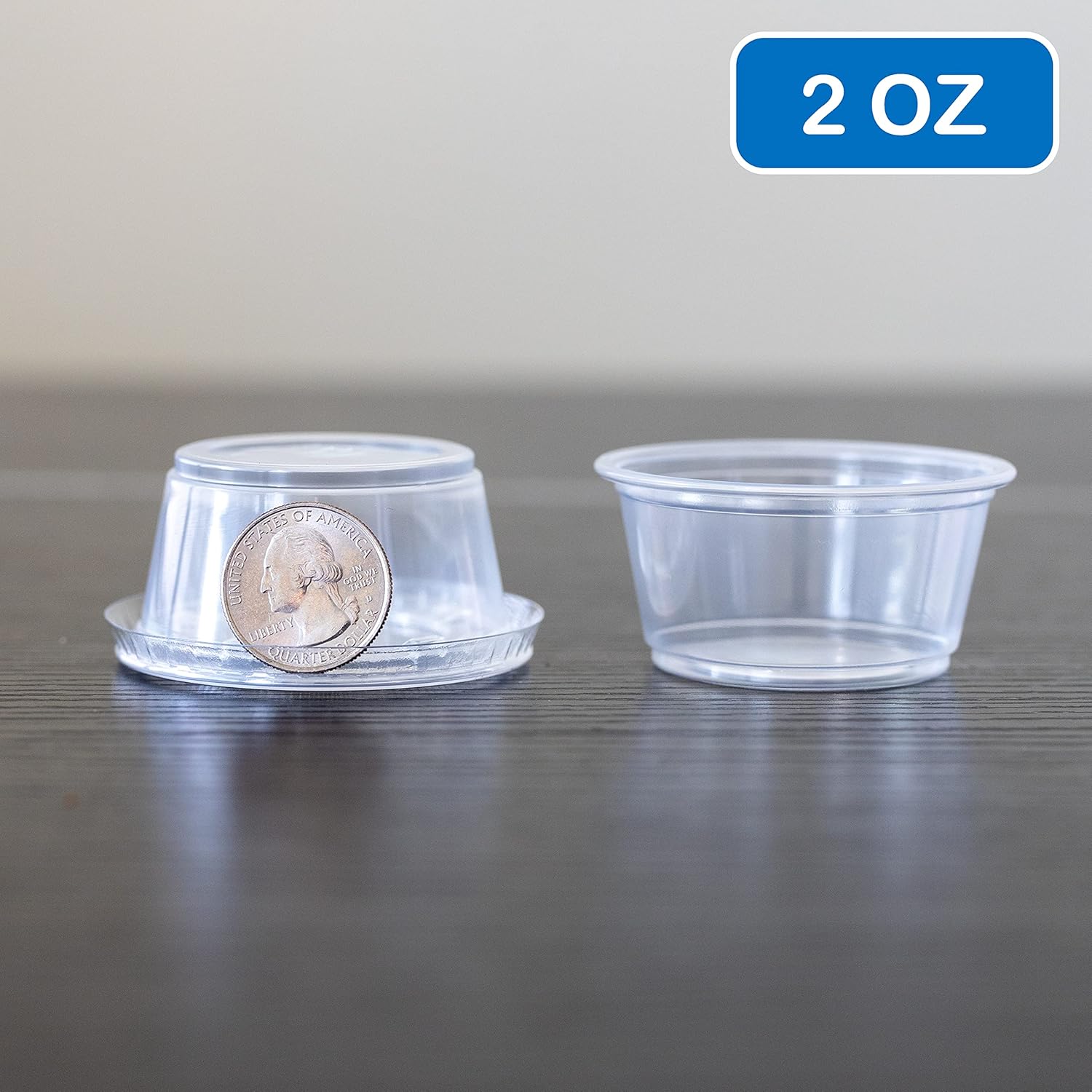 EDI - Clear Disposable Plastic Portion Cups with Leakproof Lids - Jello Shot, Condiment and Dipping Sauce, Souffle - BPA Free, Recyclable (2 OZ, 50 Sets)