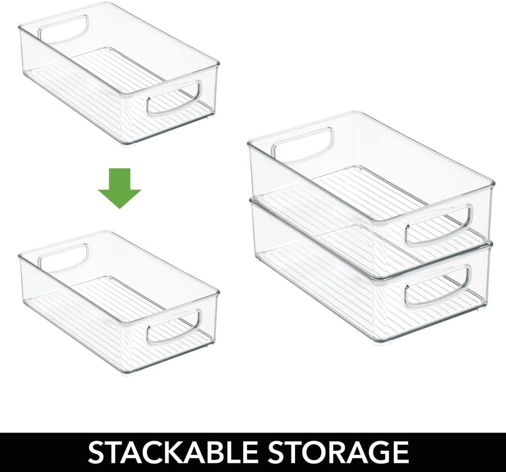 mDesign Small Plastic Baby Nursery and Food Organizer -Storage Holder Bin with Handles for Closet, Cupboard, Cabinet, Drawers, Shelves - Holds Canned Food, Bottles, Formula - Ligne Collection, Clear
