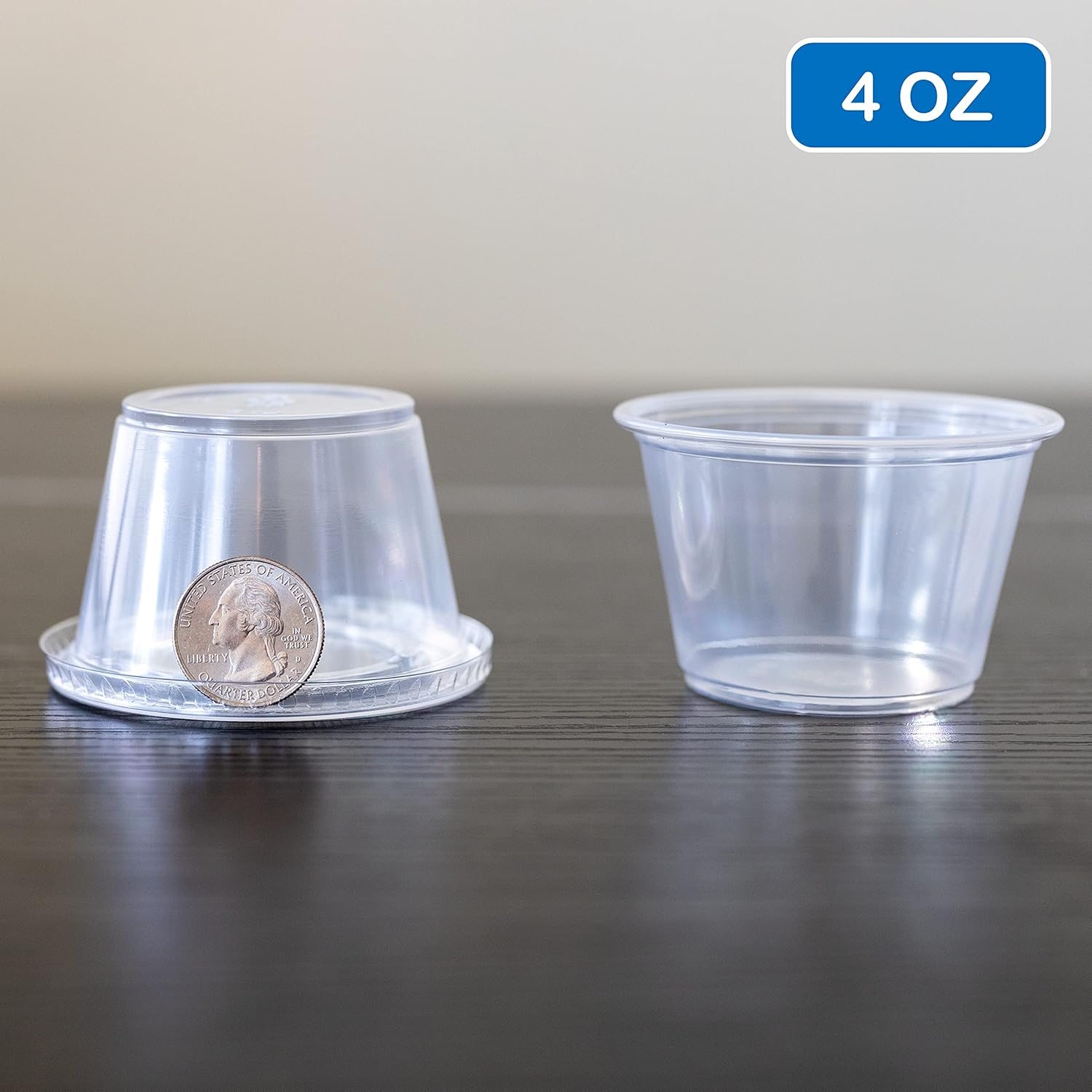 EDI 4 Ounce Clear Plastic Disposable Portion Cups/Souffle Cup with Lids, 50 Sets