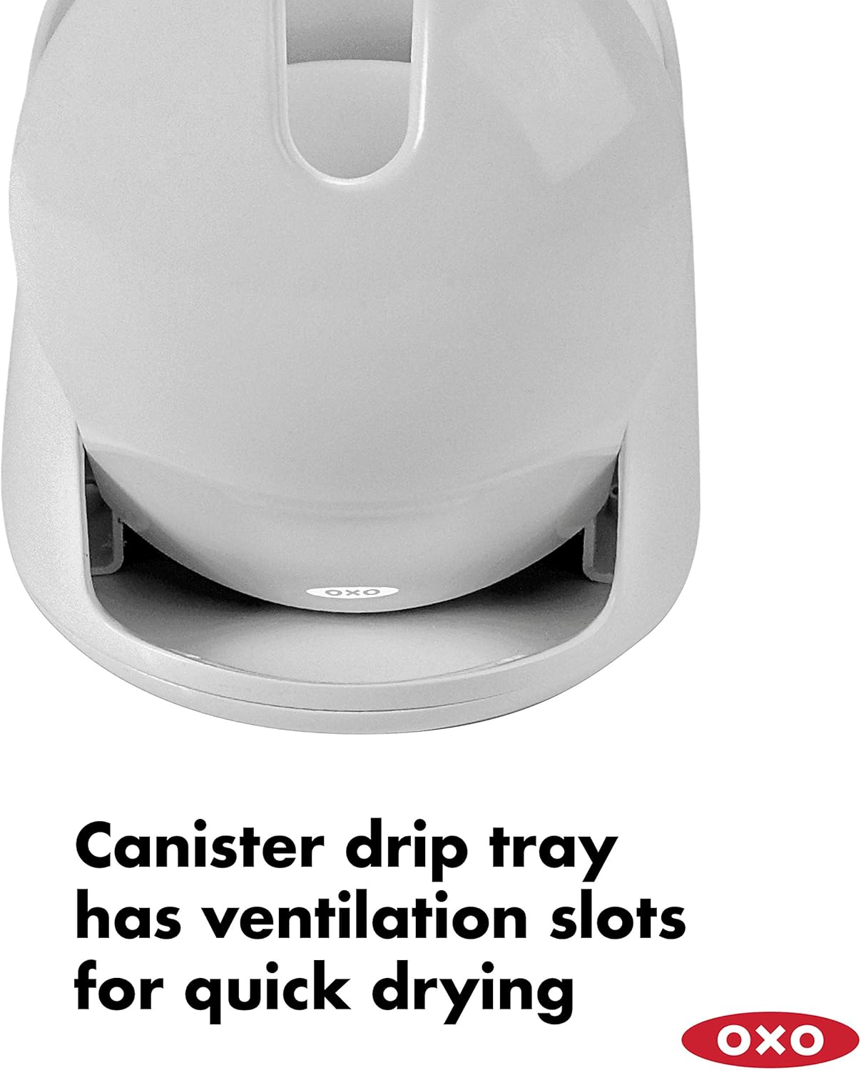 - Canister drip tray features ventilation slots that allow water to quickly evaporate
