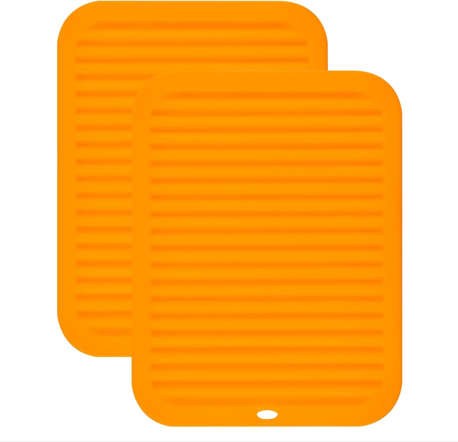 Silicone Trivets Mat Set of 2 Smithcraft 30x22.5cm Big Multi-Purpose Drying Trivet Mat, Pot Holder, Waterproof, Non Slip, Flexible, Durable, Dishwasher Safe Orange