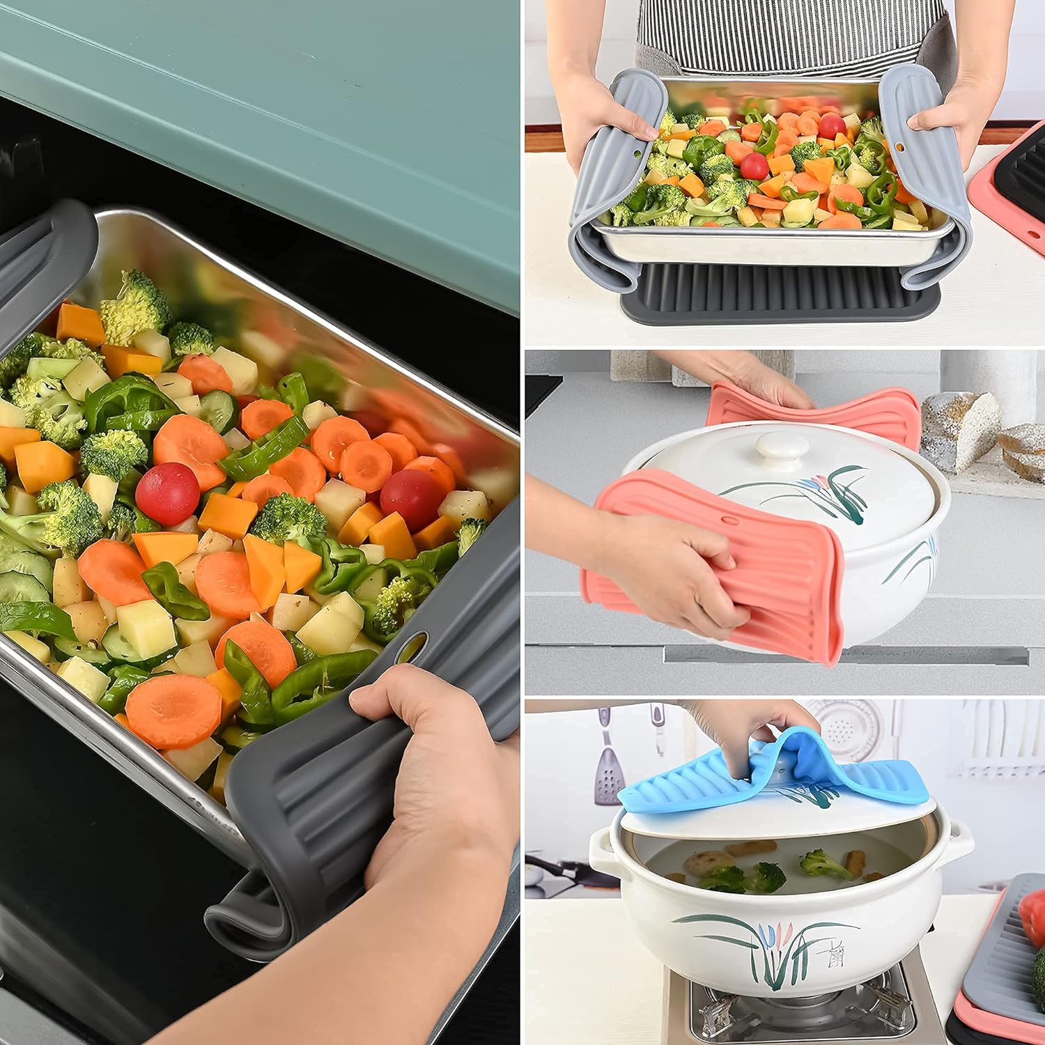 - PREMIUM FOOD-GRADE SILICONE & PERFECT SIZE - Made from 100% <br>BPA-free food grade silicone, non-slip,flexible <br>enough to comfortably grab a hot dish, measures 9x12x0.22 <br>inches(thicker than competitors).