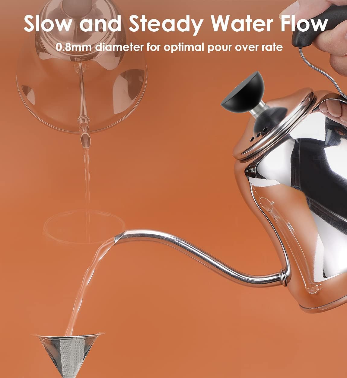 - PERFECT GOOSENECK SPOUT: Chefbar pour over tea kettle is designed with a precise gooseneck spout nozzle to help you control the water flow. Precise and smooth water flow is essential in making drip coffee and pouring over tea. Pour the right amount of water and pour at the right speed for consistent coffee extraction.