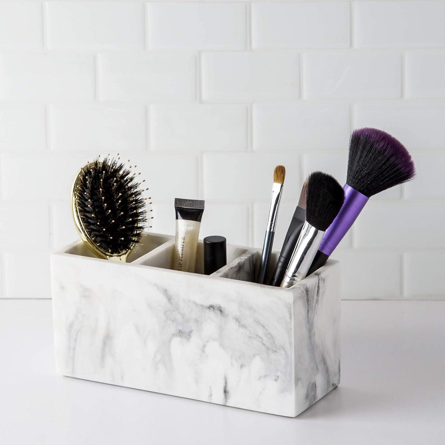 BINO Multi Purpose 3 Compartment Organizer - Makeup Container Organizers - Compartment Organizer for Makeup Brushes, Home and Office Supplies - Matte Marble