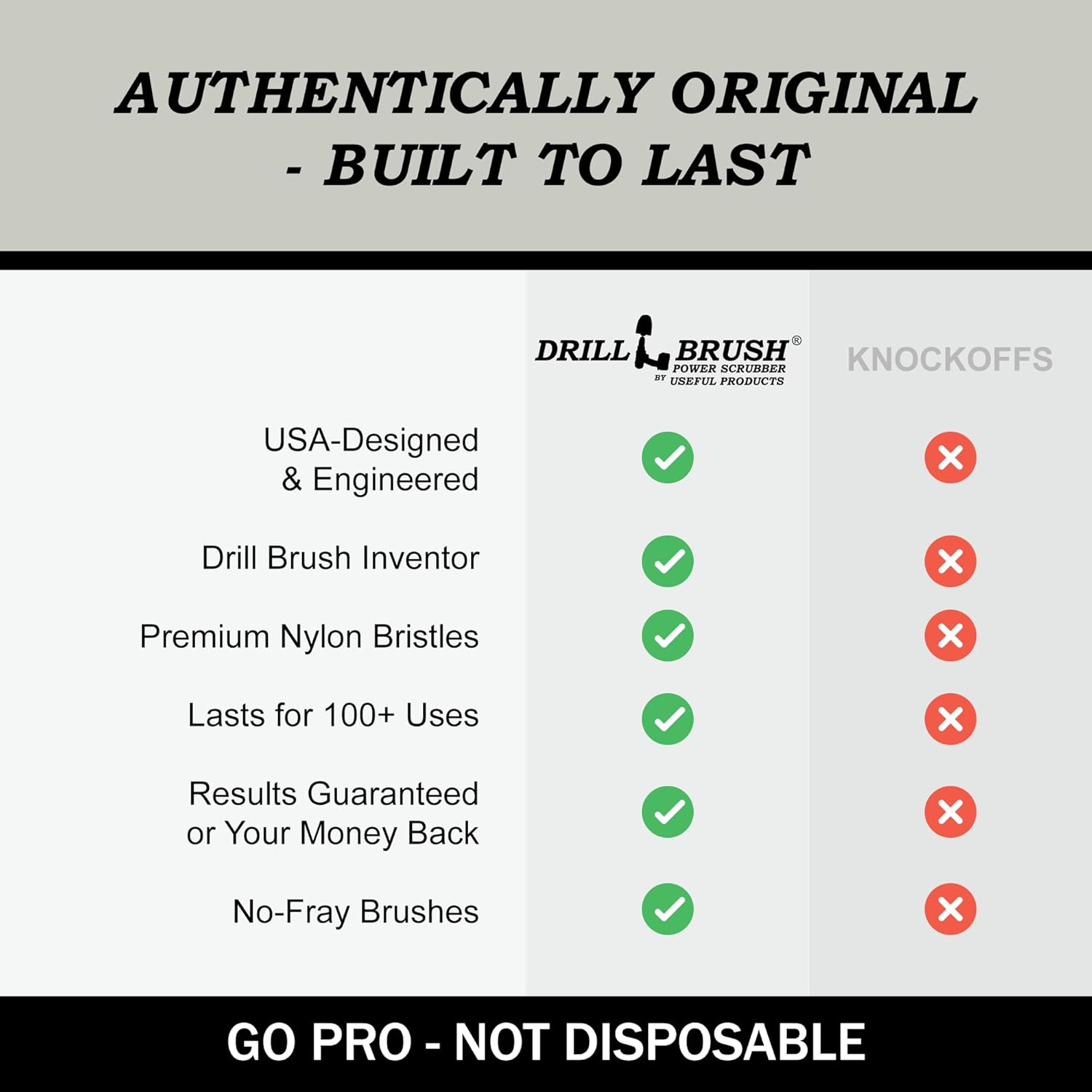 - CRAFTED BY INNOVATORS, TRUSTED BY MILLIONS - THE DRILLBRUSH STORY: Born from a real need and refined through feedback, Drillbrush Power Scrubber products are proudly made by cleaning enthusiasts for cleaning enthusiasts. With millions sold, our brush attachment for power drill lineup reflects a commitment to quality, innovation, and user satisfaction. Experience the difference with Drillbrush - inventor/innovator of the scrub brush for drill