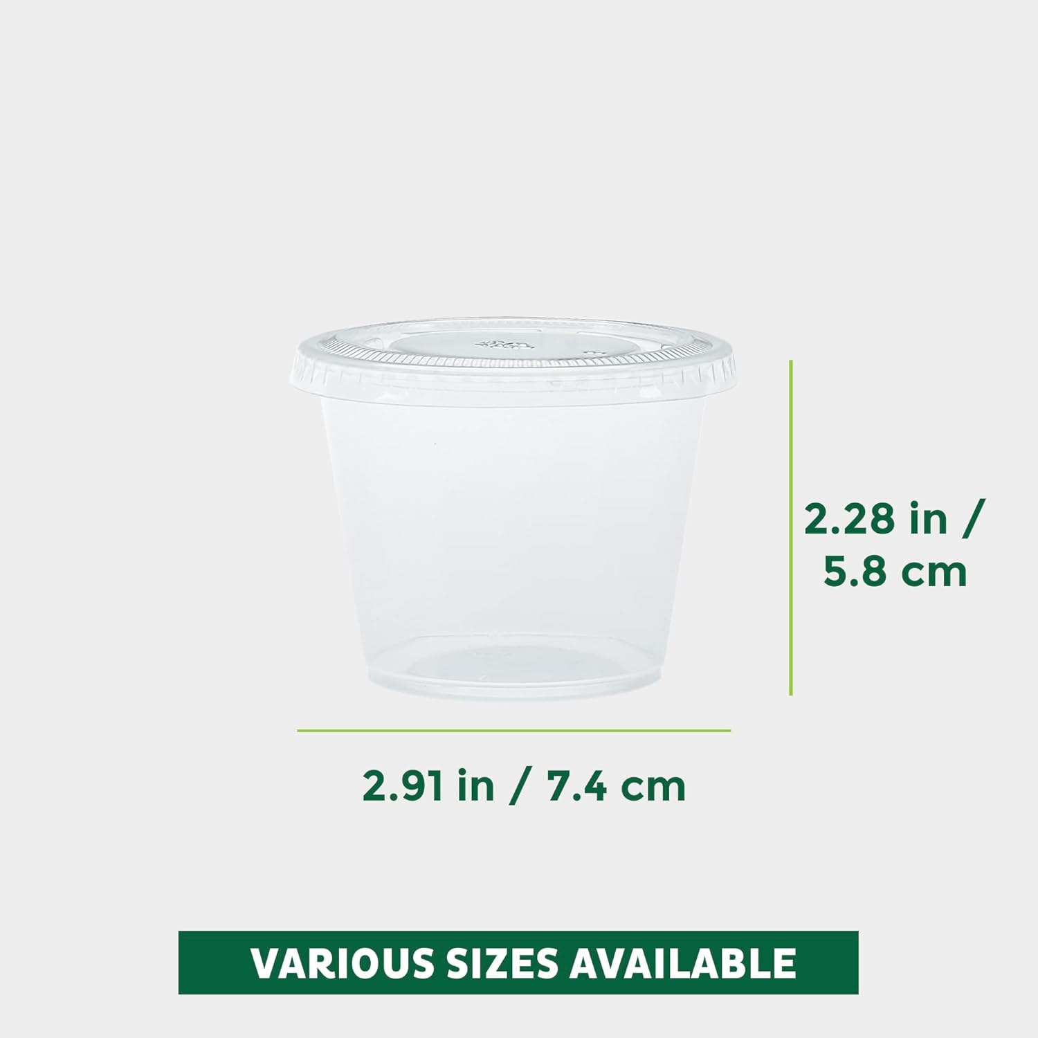Freshware Plastic Portion Cups with Lids [5.5 Ounce, 100 Sets] Souffle Cups, Jello Shot Cups, Condiment Sauce Containers For Sampling, Sauce, Snack or Dressing