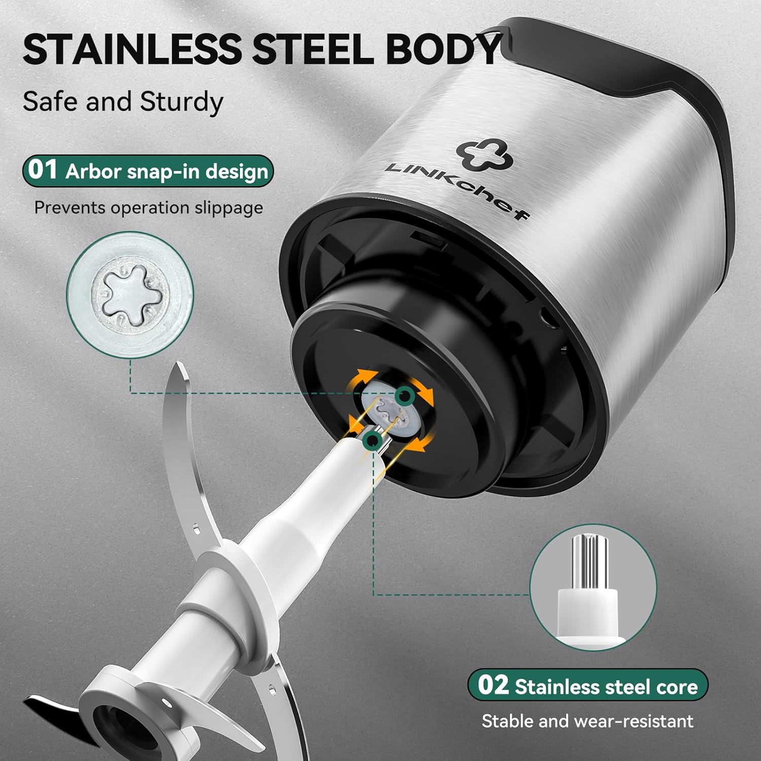 - What You Get: LINKChef small chopper main body/power pod, 4 bi-level blades, stainless steel bowl, BPA 0 transparent lid, anti-slip rubber mat, user manual, our 7*24h friendly customer service