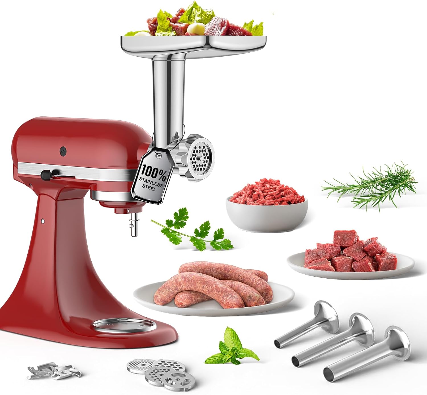 - Meat Grinder & Sausage Stuffer Attachment for KitchenAid Stand Mixer: This meat grinder for KitchenAid Stand Mixer can easily handle various tasks—grind beef, pork, and venison. With the three-sized sausage stuffer tubes, you can make any type of sausage you like.
