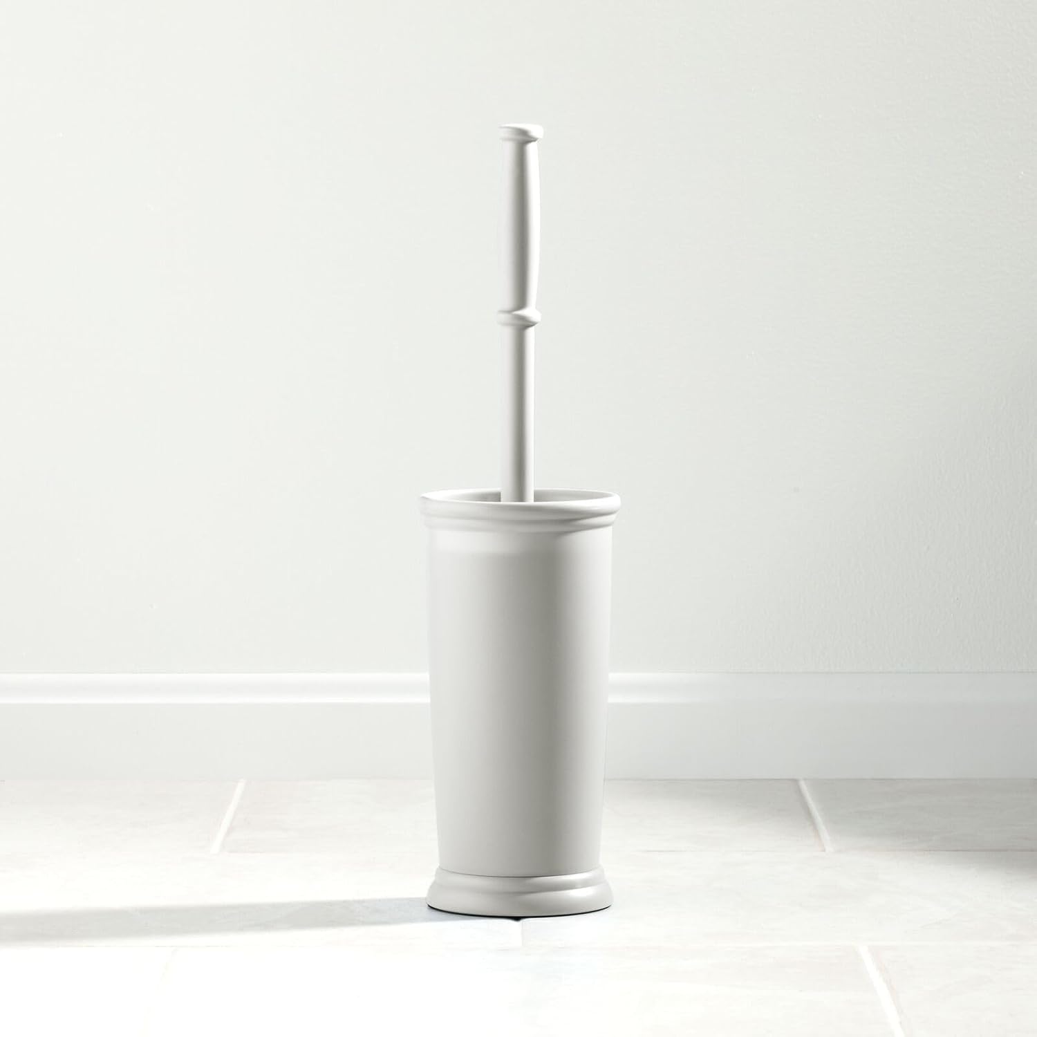 mDesign Toilet Bowl Brush and Holder - Covered Bathroom Toilet Brush - Standing Toilet Bowl Scrubber in Modern Holder - Space Saving, Deep Cleaning Brush for Toilet - Hyde Collection - Light Gray