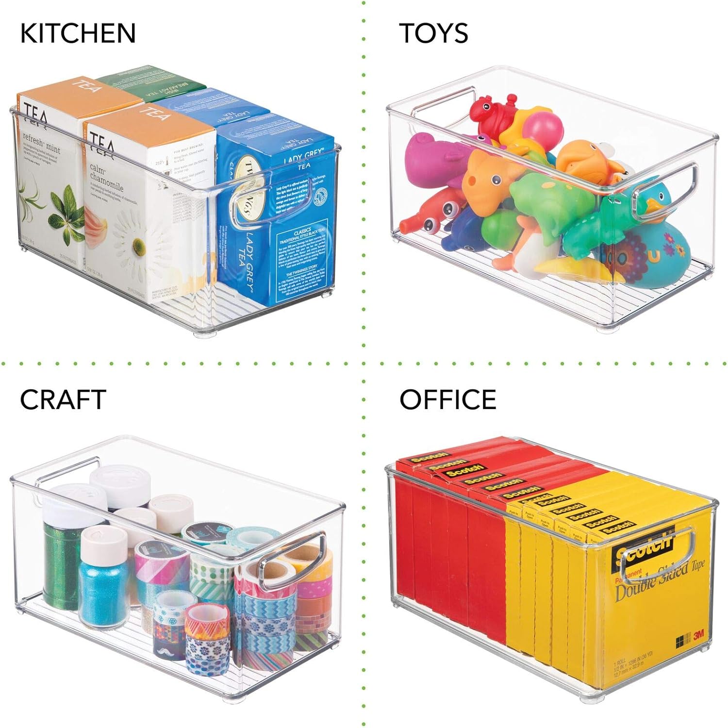 mDesign Plastic Storage Organizer Wide Container Bin with Handles for Bathroom, Home Organization - Holds Vitamins, Supplements, Makeup, Styling Tools - Ligne Collection - Clear