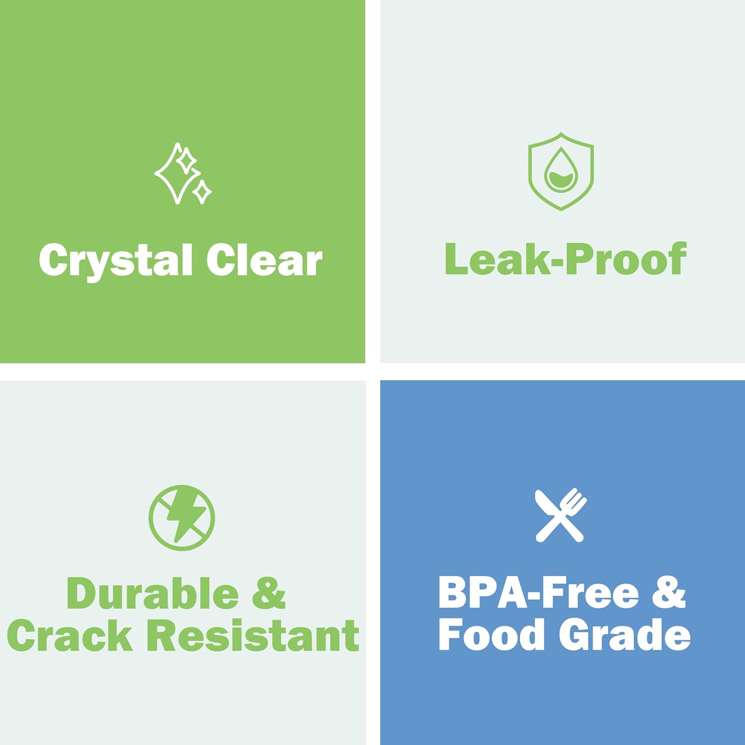 - Airtight lids with audible snap closure to ensure secure lid seal and no leaks at all.