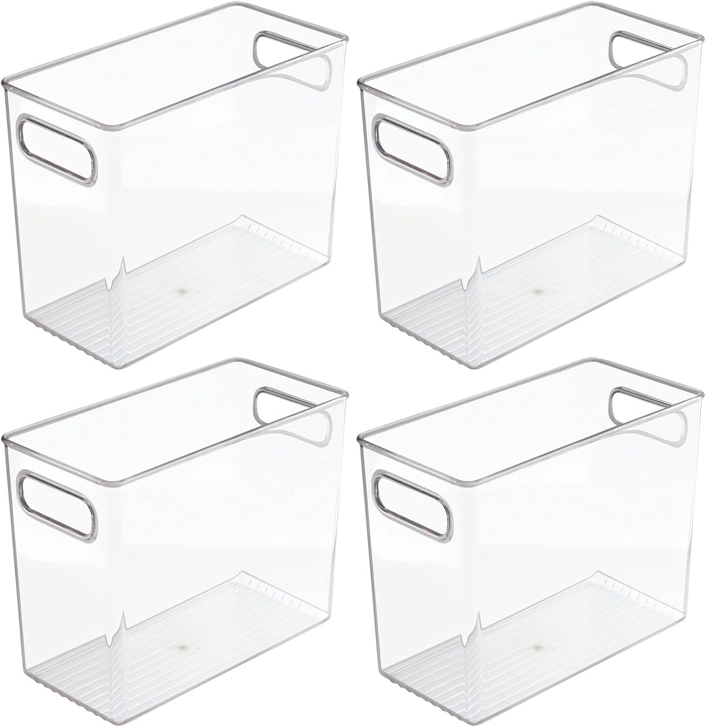 mDesign Tall Modern Stackable Plastic Storage Organizer Bin Basket with Handles for Bathroom Vanity Organization - Shelf, Cubby, Cabinet, or Closet Organizing Decor - Ligne Collection - 4 Pack - Clear