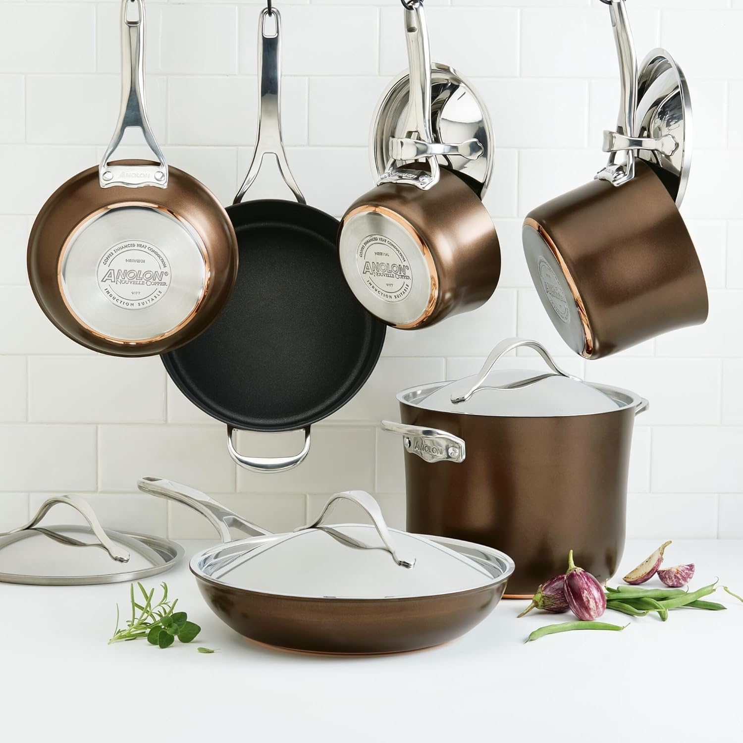 Anolon 83852 Nouvelle Copper Hard Anodized Nonstick Cookware Set / Pots and Pans Set - 11 Piece, Brown