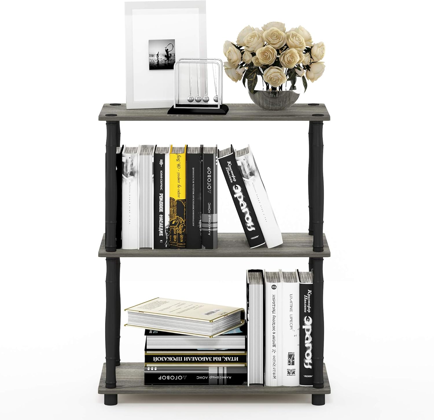 Furinno 18029GYW/BK Turn-N-Tube 3-Tier Compact Multipurpose Shelf Display Rack, Classic, French Oak Grey/Black, 3-Tier Classic Tubes