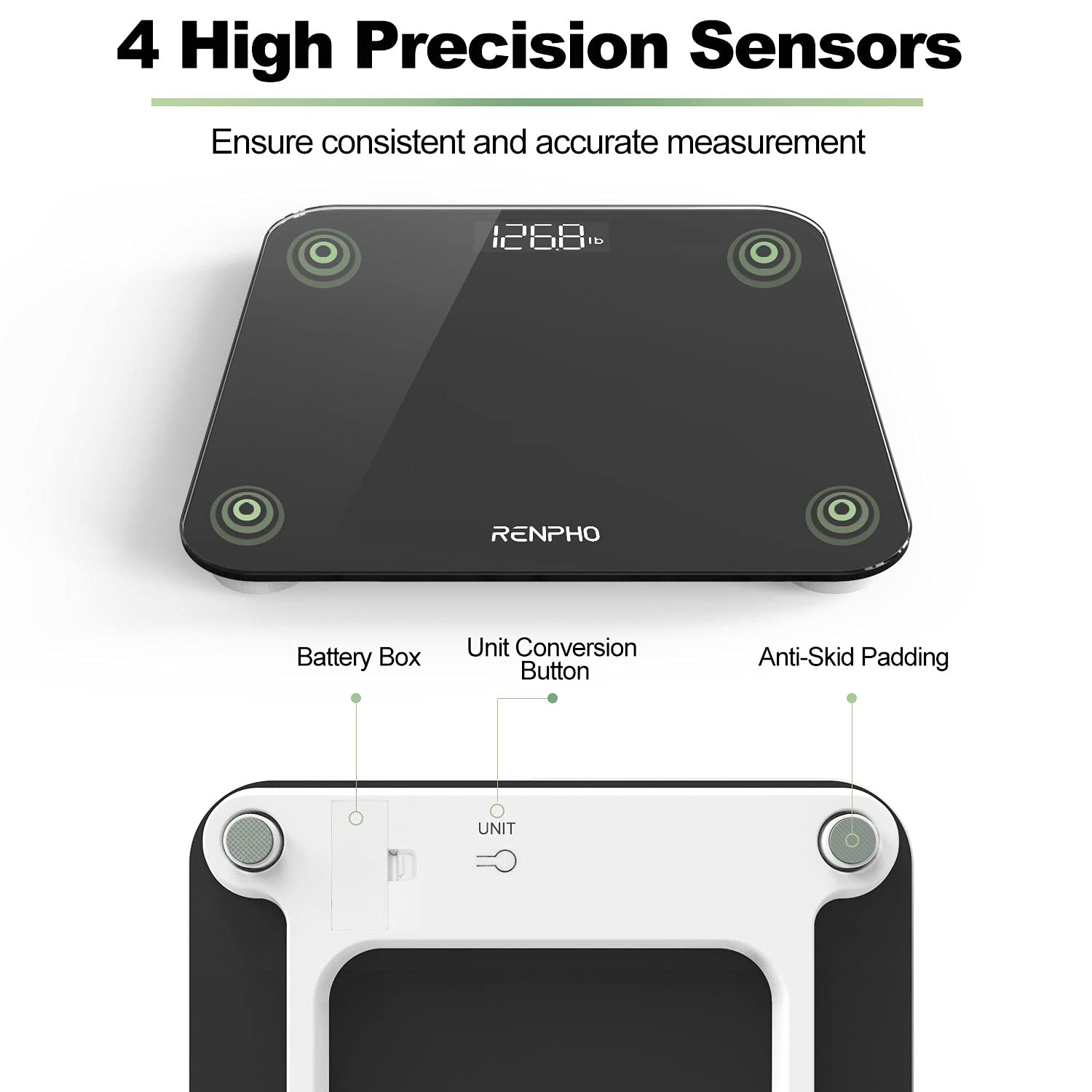 - Always Accurate: Equipped with 4 high-precision sensors, the bathroom scale instantly delivers precise weight readings with a capacity of 400lb (180kg) in 0.1lb (0.05kg) increments, enabling you to accurately track even small changes in your weight.