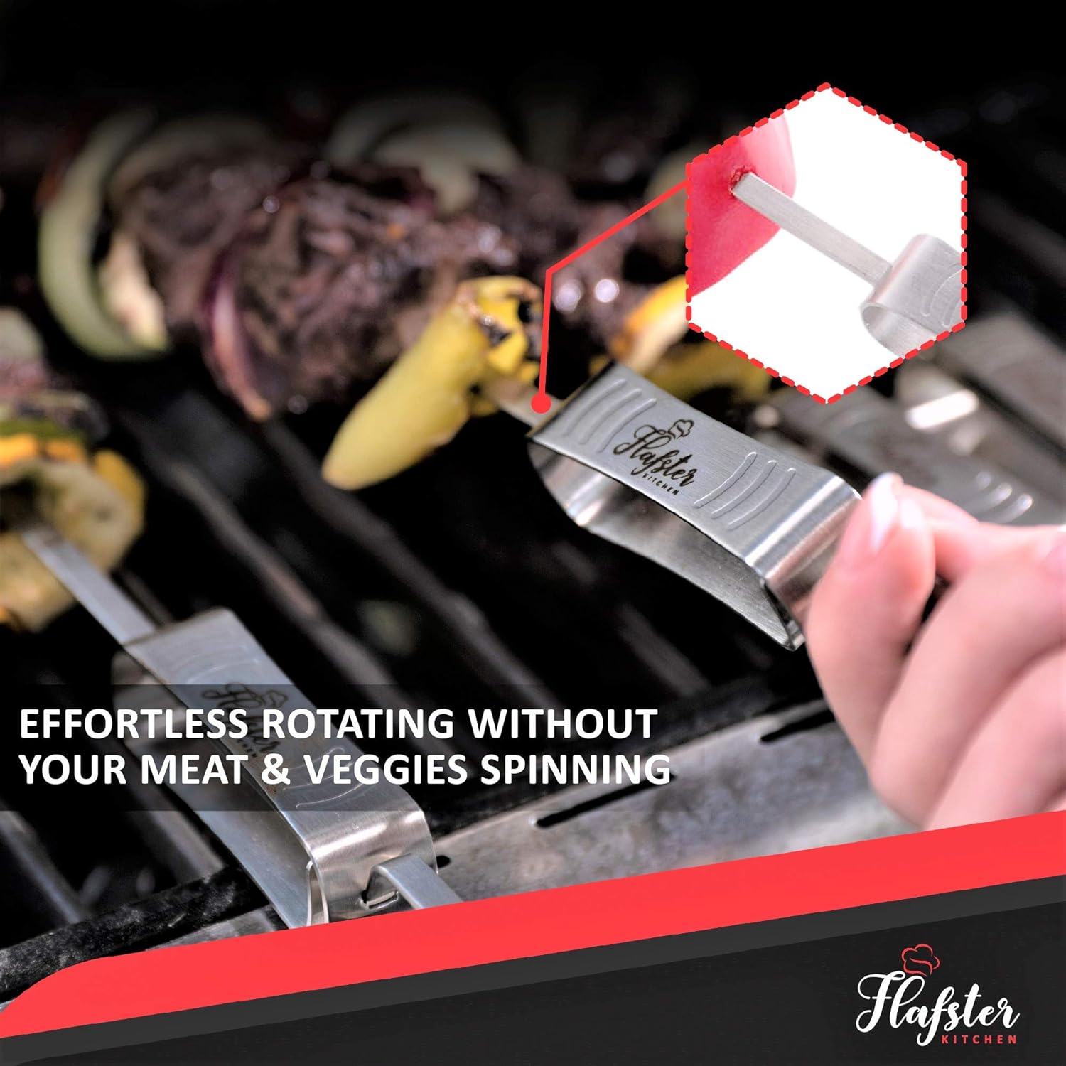 - FLAT BLADE AND ANGLED TIP: And that makes them perfect for grilling meat, chicken, shrimp and vegetables; Easy to use and turn around without the veggies and meat falling off the sticks;