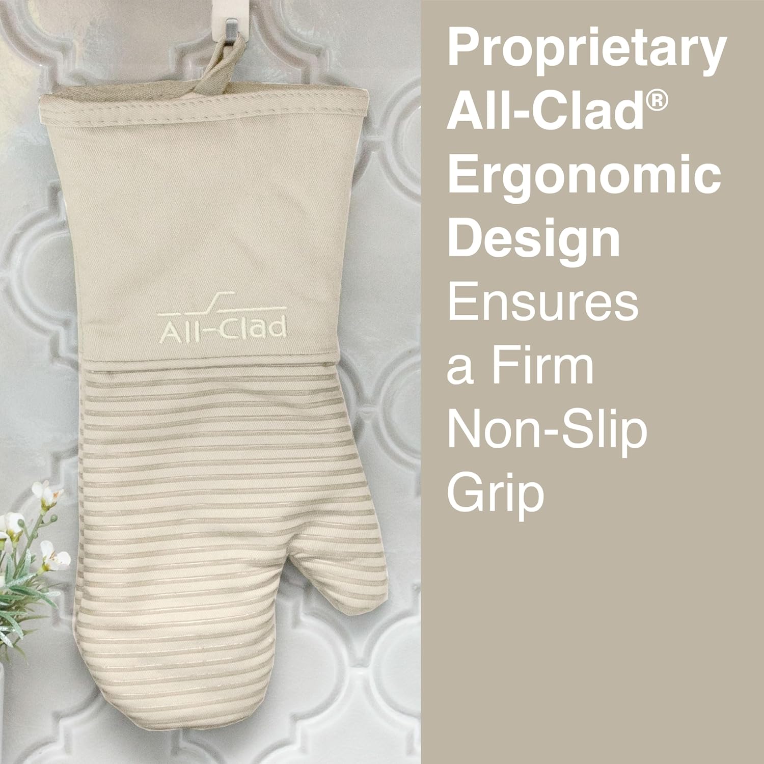 All-Clad Premium Silicone Oven Mitt: Heat Resistant to 500 Degrees - 100% Cotton & Silicone, 14"x7" Pot Holder for Kitchen and Barbeque, (1-Pack), Almond