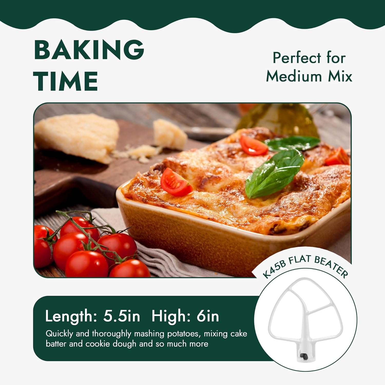 - 𝐓𝐢𝐥𝐭-𝐇𝐞𝐚𝐝 𝐂𝐨𝐚𝐭𝐞𝐝 𝐅𝐥𝐚𝐭 𝐁𝐞𝐚𝐭𝐭𝐞𝐫 |coated flat beater 𝐊45𝐁 is perfect for quickly and thoroughly mashing potatoes, mixing cake batter and cookie dough and so much more.Fits models K45SS, KSM75 and KSM95. replace: AP3884849, 4162163, 1181238, 4169986, 9707669, AH987906, EA987906, PS987906