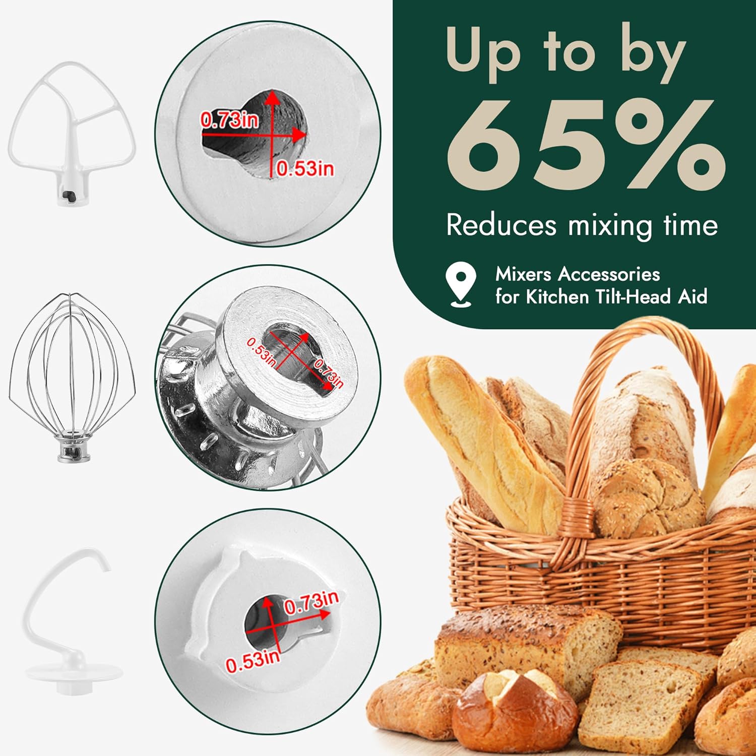 - Special Feature : Note: To install this part, locate the mixer shaft under the stand of the mixer head. Align the pin on the shaft with the notch on the accessory and slide it as far up on the shaft as possible. Then, turn the attachment counterclockwise until it is secure., ▴K45B: The nylon-coated flat beater is perfect for quickly and thoroughly mashing potatoes, mixing cake batter and cookie dough and so much more. The flat beater is top-rack dishwasher safe.Fits models K45SS, KSM75 and KSM95.replacement for AP3884849, 4162163, 1181238, 4169986, 9707669, AH987906, EA987906, PS987906, ▴K45DH: The nylon-coated C-dough hook mixes and kneads yeast dough with ease, saving you both the time and effort of hand kneading. The dough hook is top-rack dishwasher safe. Fits models K45SS, KSM75, KSM95, KSM150PS, KSM152PS and KSM155GB, ▴K45WW:The 6-wire whip quickly incorporates air into ingredients for fluffy whipped cream, perfect boiled frostings and cakes with whipped egg whites.Fits Models: K4SS, K5(A), K5SS, KG25G7X, KG25H0X, KG25H3X, KP50PS, KSM450, KSM455, KSM5, KSM50HDP, KSM500, 𝐒𝐜𝐨𝐩𝐞 𝐨𝐟 𝐀𝐩𝐩𝐥𝐢𝐜𝐚𝐭𝐢𝐨𝐧 | Works with most top name brands. Note: To install this part, locate the mixer shaft under the stand of the mixer head. Align the pin on the shaft with the notch on the accessory and slide it as far up on the shaft as possible. Then, turn the attachment counterclockwise until it is secure Note: To install this part, locate the mixer shaft under the stand of the mixer head. Align the pin on the shaft with the notch on the accessory and slide it as far up on the shaft a… See more