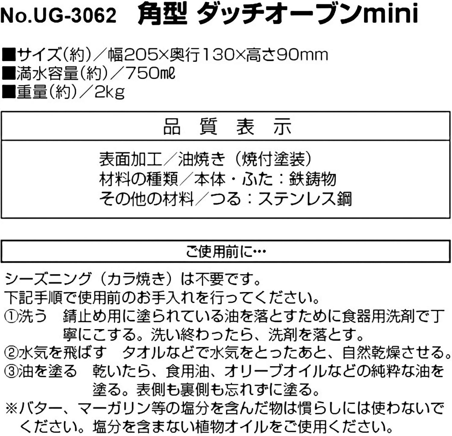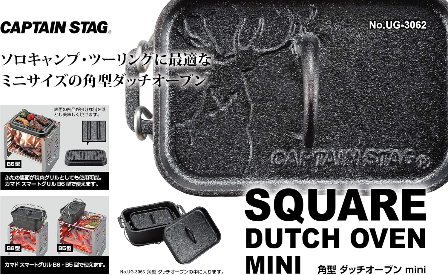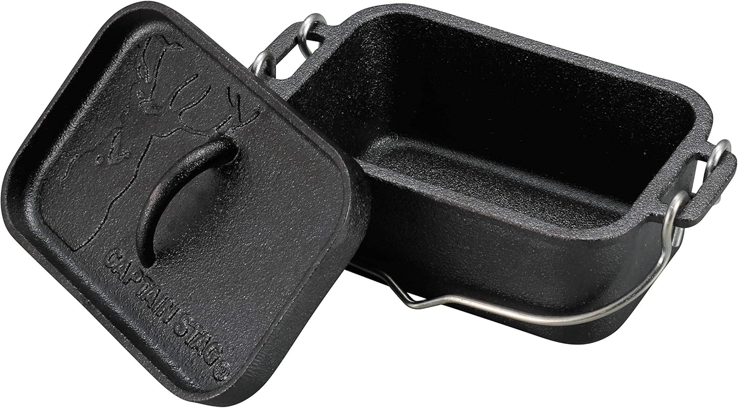 Captain Stag UG-3062 Dutch Oven, Iron Casting, Square Shape, Mini Dutch Oven, Width 8.1 x Depth 5.1 x Height 3.5 inches (205 x 130 x 90 mm), Full Water Capacity: 25.5 fl oz (750 ml), No Seasoning