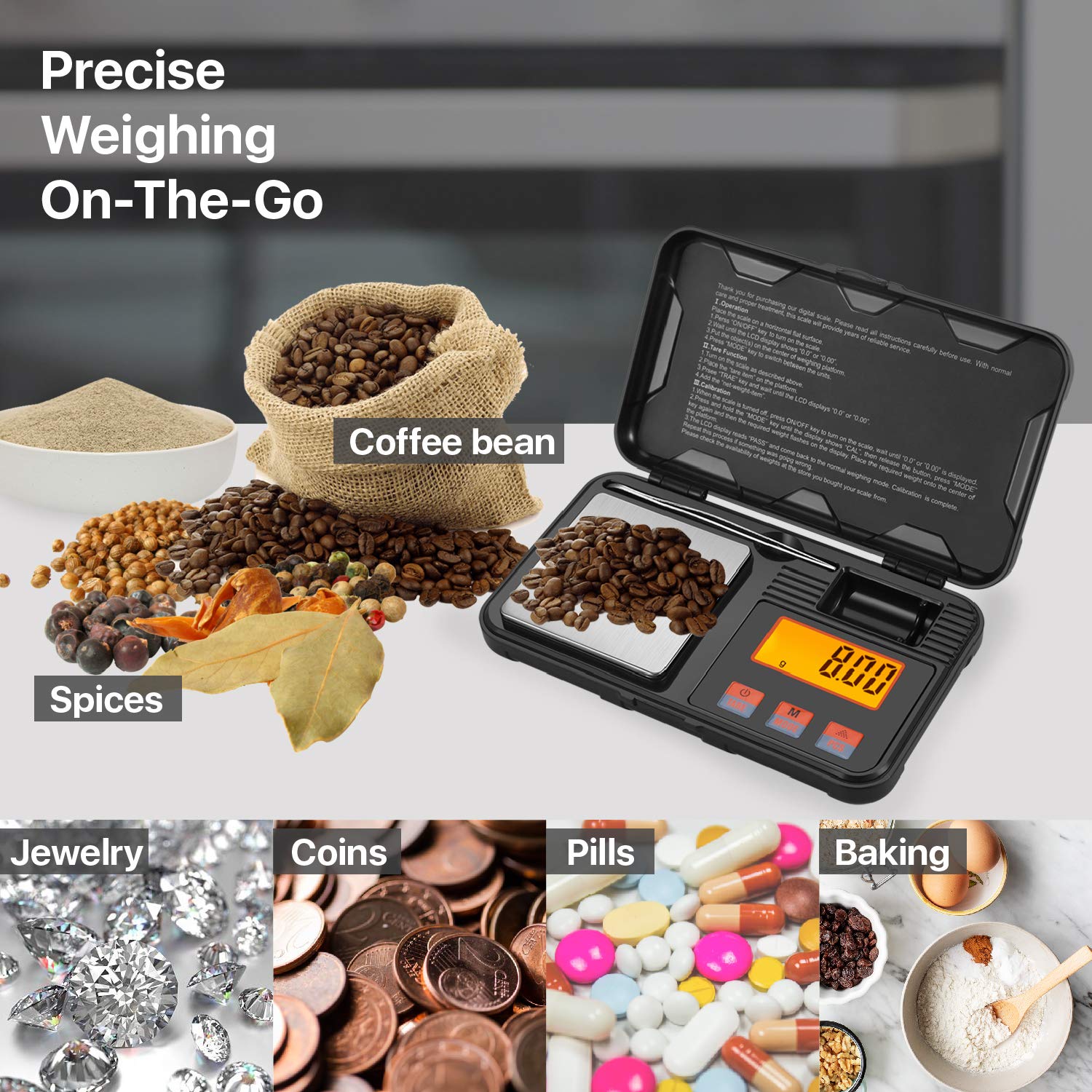 - Compact & Accurate Pocket Scale: This compact scale measures 5.2 x 2.99 x 0.79 in and weighs up to 50g with digital scale .01 gram accuracy. Not for items over 50g