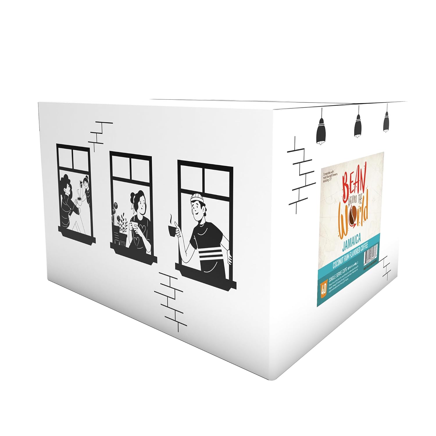 BEAN AROUND THE WORLD Flavored Coffee Compatible With 2.0 Keurig K Cup Brewers, Coconut Rum, 40 Count