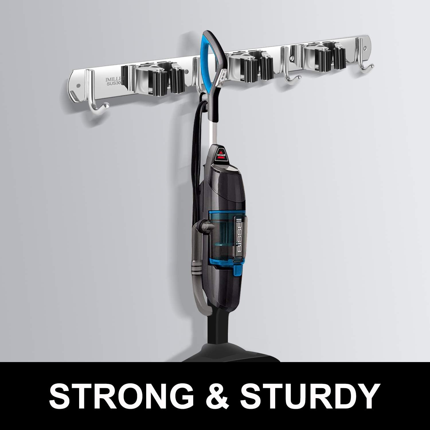 - STRONG & STURDY: Broom holder wall mount is made of 304 stainless steel, corrosion-resistant, moisture proof and waterproof. Compared with the plastic broom rack, it's more stronger and sturdy. And this broom organizer can hold up to 200 pounds.
